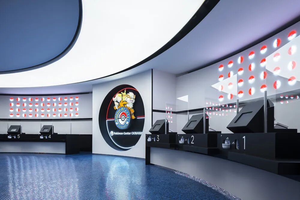口袋妖怪中心是传达口袋妖怪的魅力和传递内容的基地。基于口袋妖怪的世界观,我们的目标是创造一个空间,让您可以体验到单机游戏的感觉。圆形、动态和无缝的空间给人一种幻想世界中的建筑的印象,但同时又像是游戏中的洞穴或风景。通过用最少的元素(例如发光的精灵球)在整个空间中表达口袋妖怪的形象,我们创造了一种平衡,专注于在空间中发展的口袋妖怪内容,而不是空间本身的主张。通过抽象而大胆地表现冲绳的海洋和绿色植物等自然,空间具有一种深度沉浸感,仿佛进入了一个单一的世界。