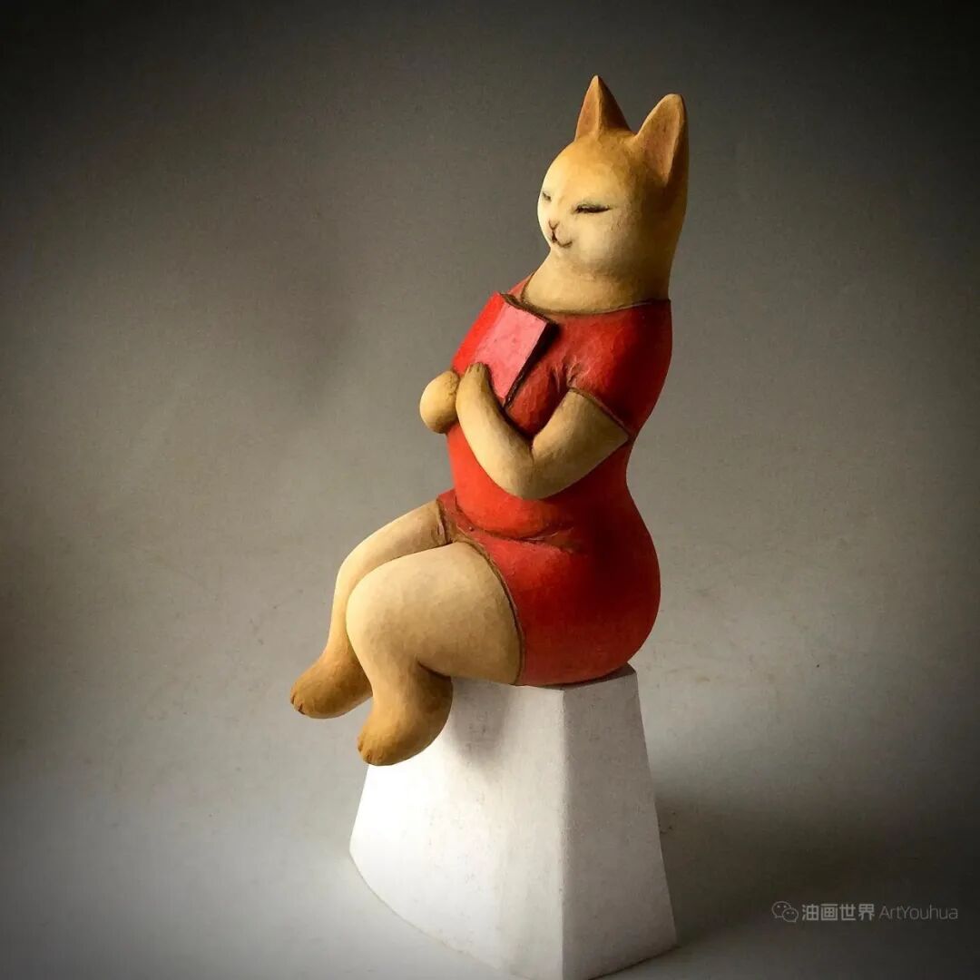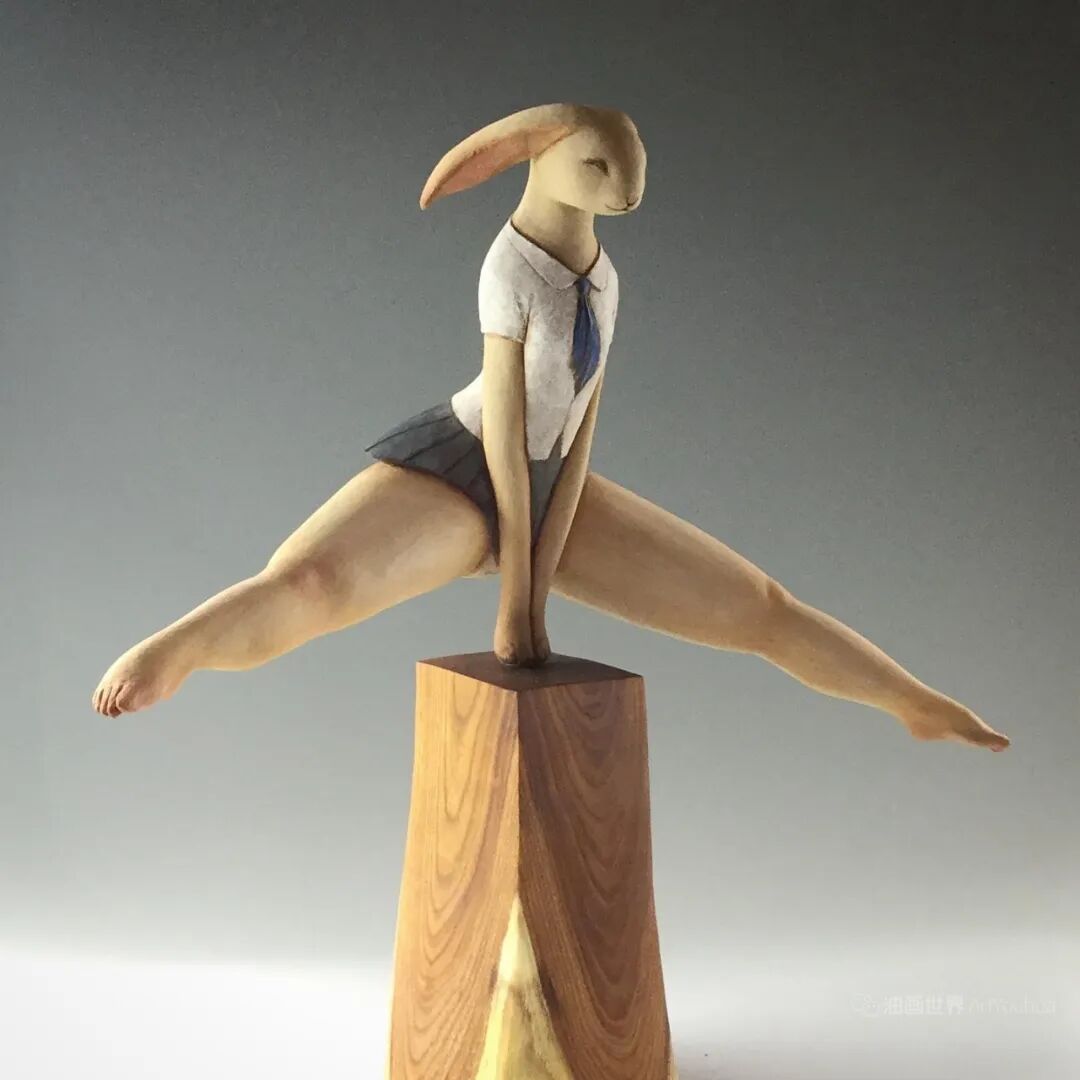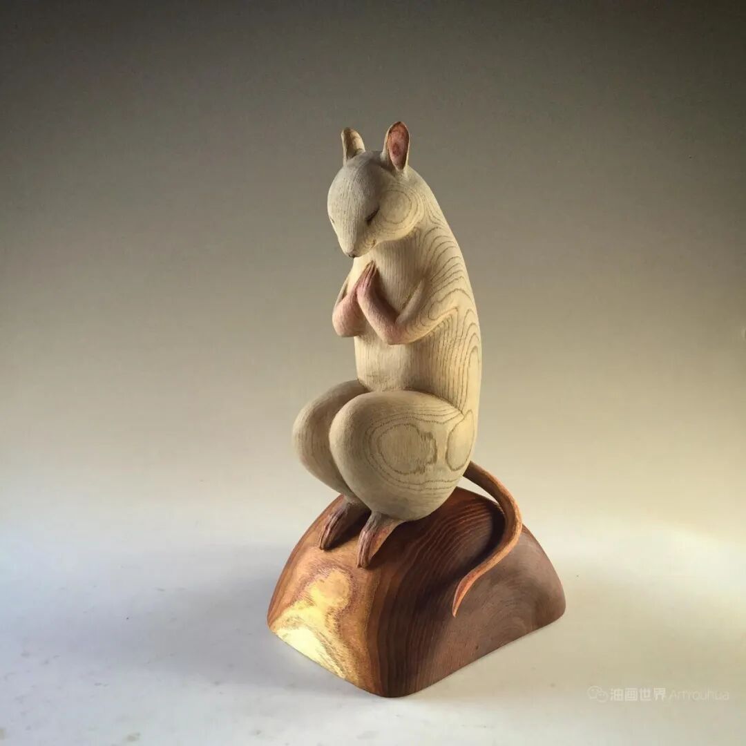 他后来创作的动物拟人木雕系列