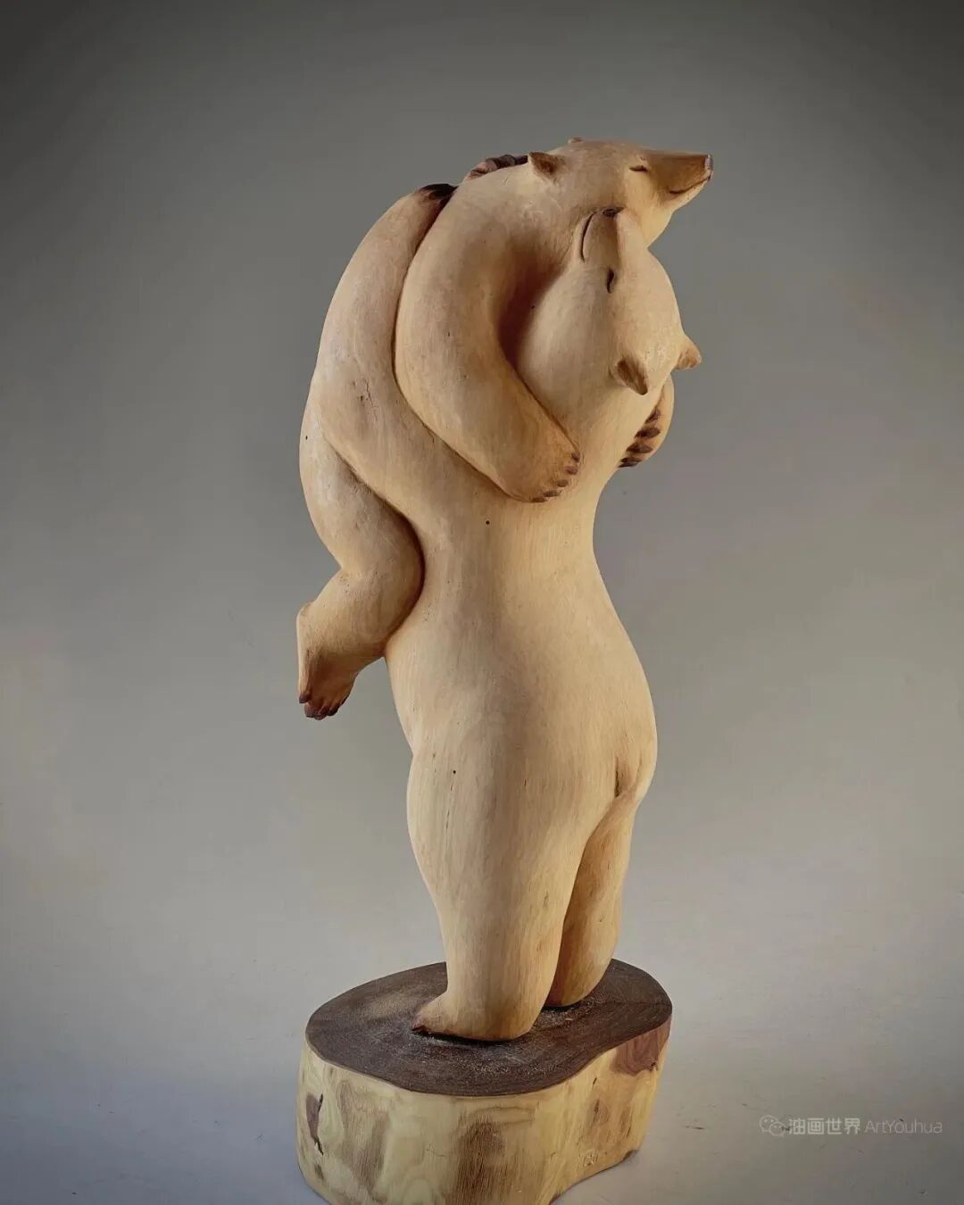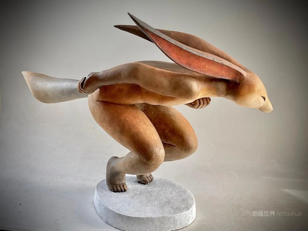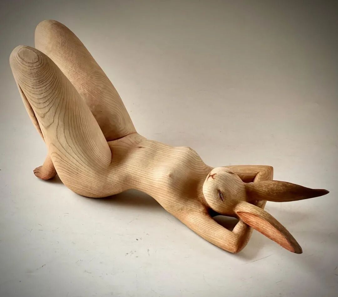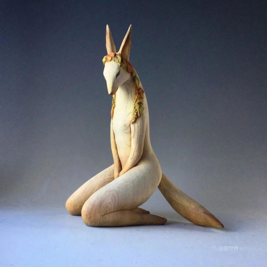 他后来创作的动物拟人木雕系列