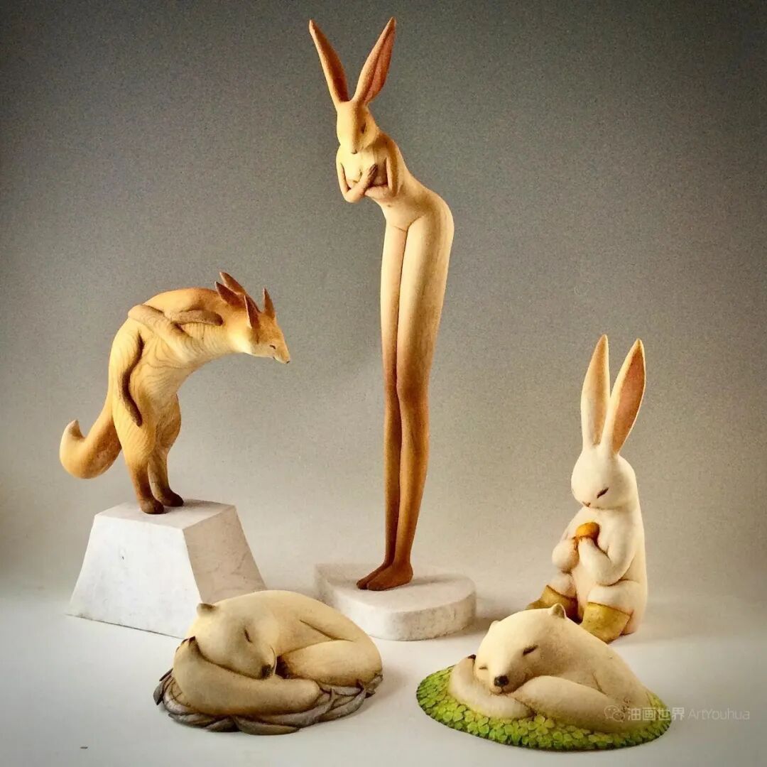 Nikichi将雕刻的动物进行了拟人化