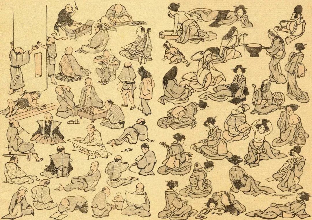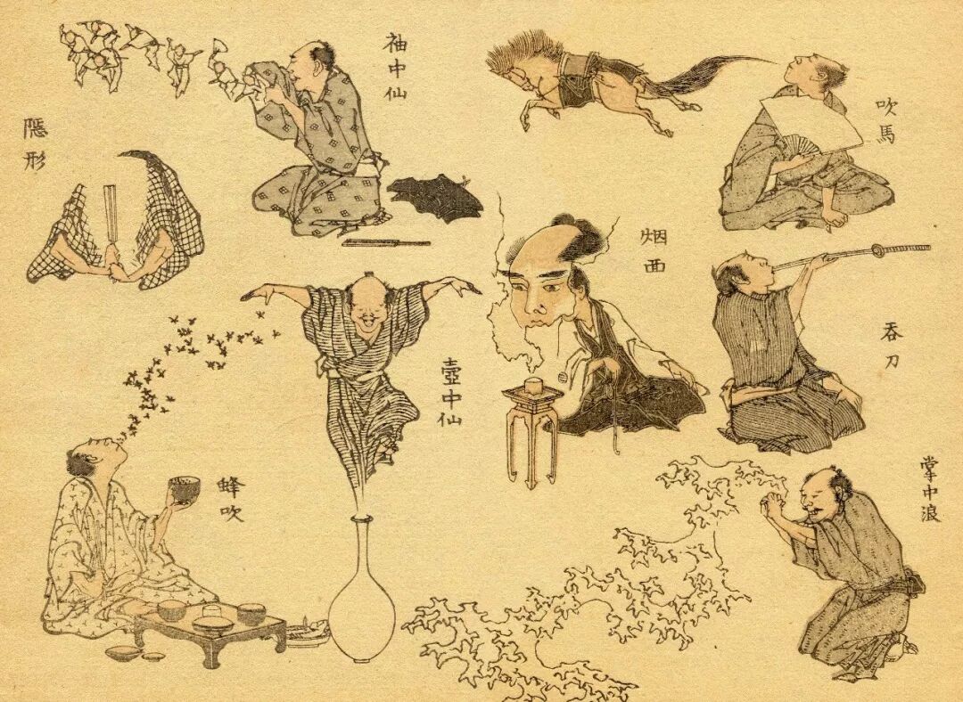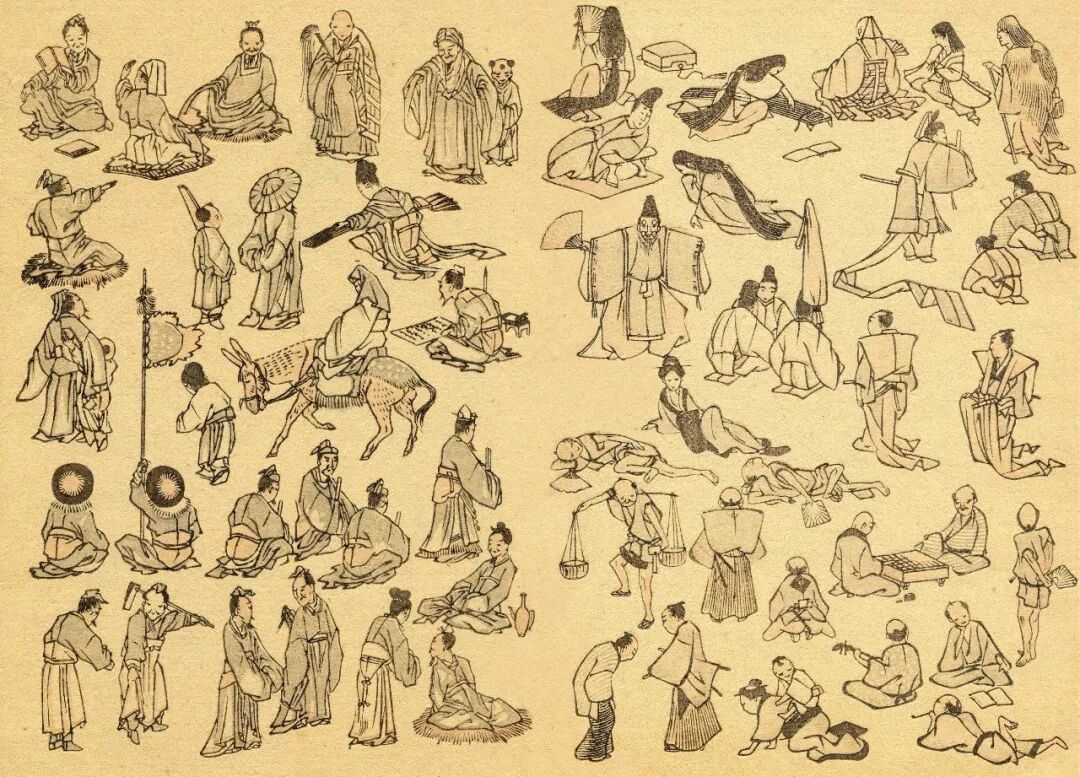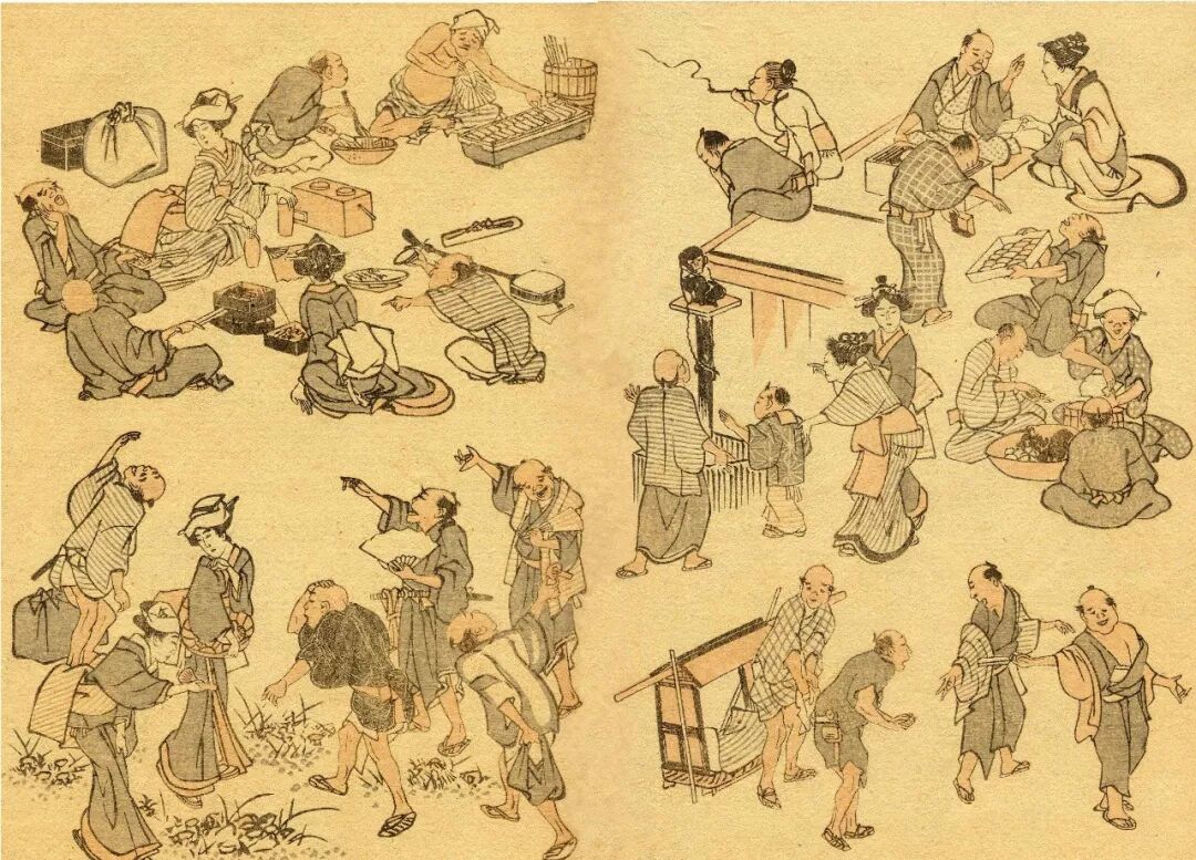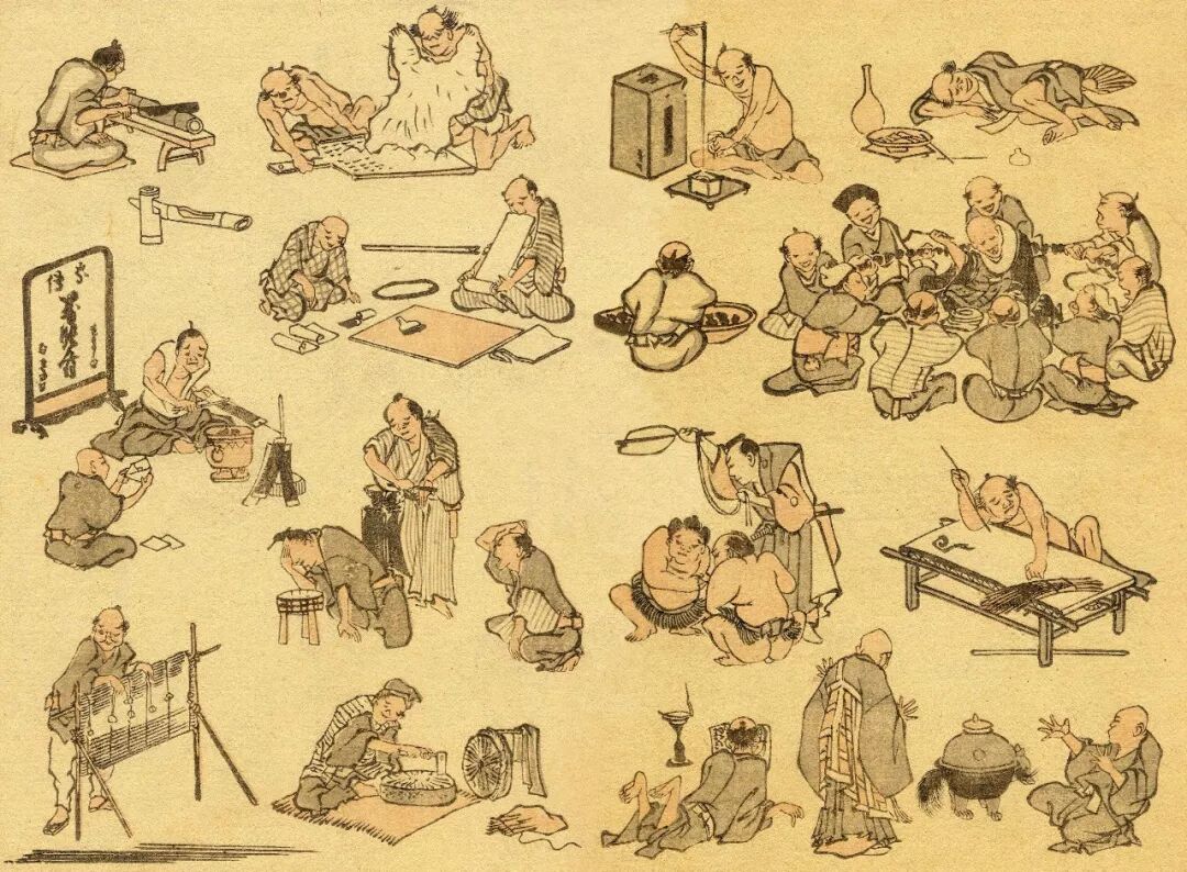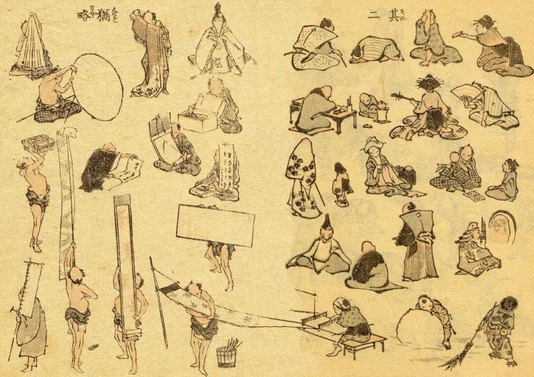 北斋漫画最大的魅力,就在于他对人世万物灵动瞬间的捕捉,并借由此细致地展示了万物诸相。他们的姿态、神情,都被描绘地栩栩如生,淋漓尽致。