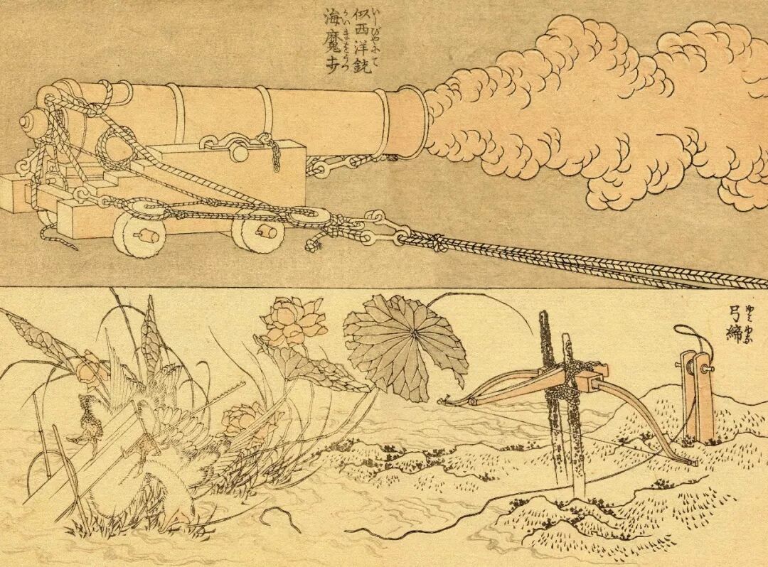 除了插画,北斋还在和服纹样、建筑、武器、机械等领域也有广泛涉猎。