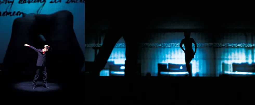 高谷史郎执导的作品"OR" 用先进的技术将身体、图像、视频、声音和灯光结合在一起,呈现生与死之间的“灰色幽默”。