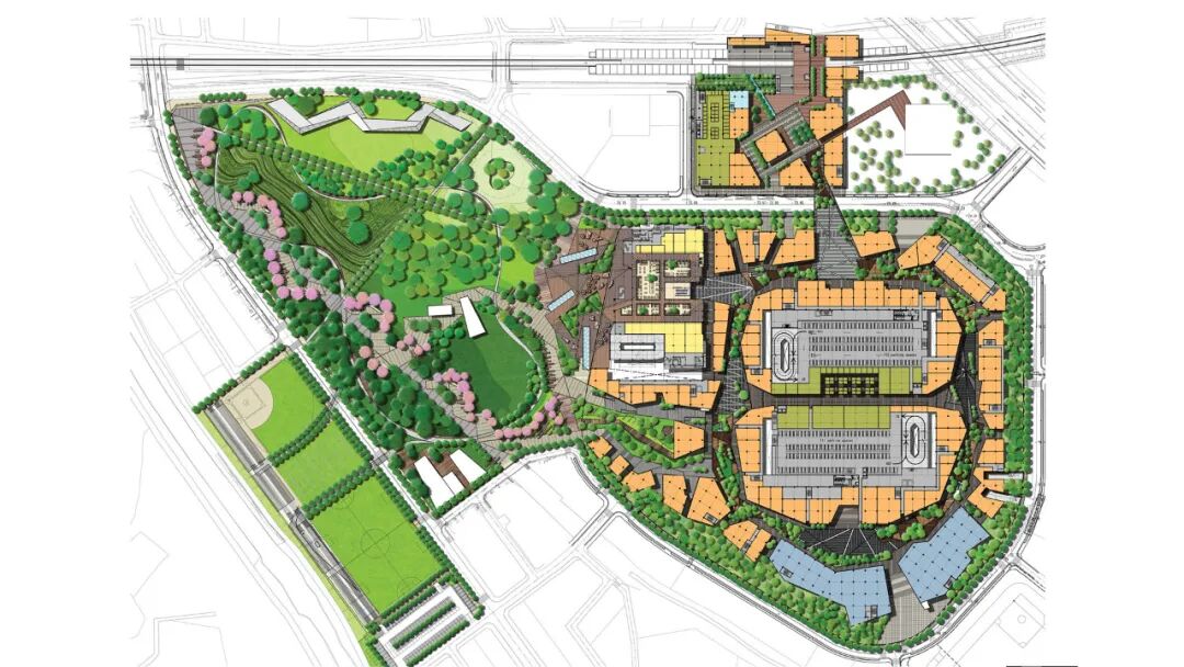 2,打造连接南町田站周边的步行道网络,提高城市交通的便利性的同时,增加车站周边绿植覆盖率。