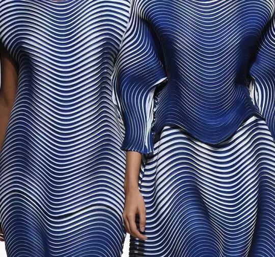 “一生褶”与“A POC(a piece of cloth)一块布”的革新理念,两者则分别代表三宅一生对服装折叠的探索和环保理念的实践。