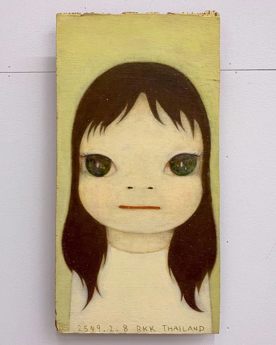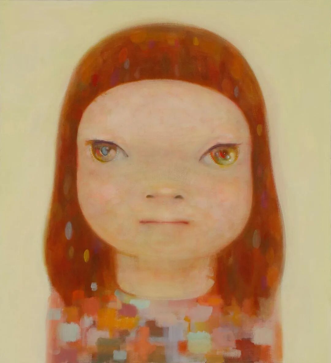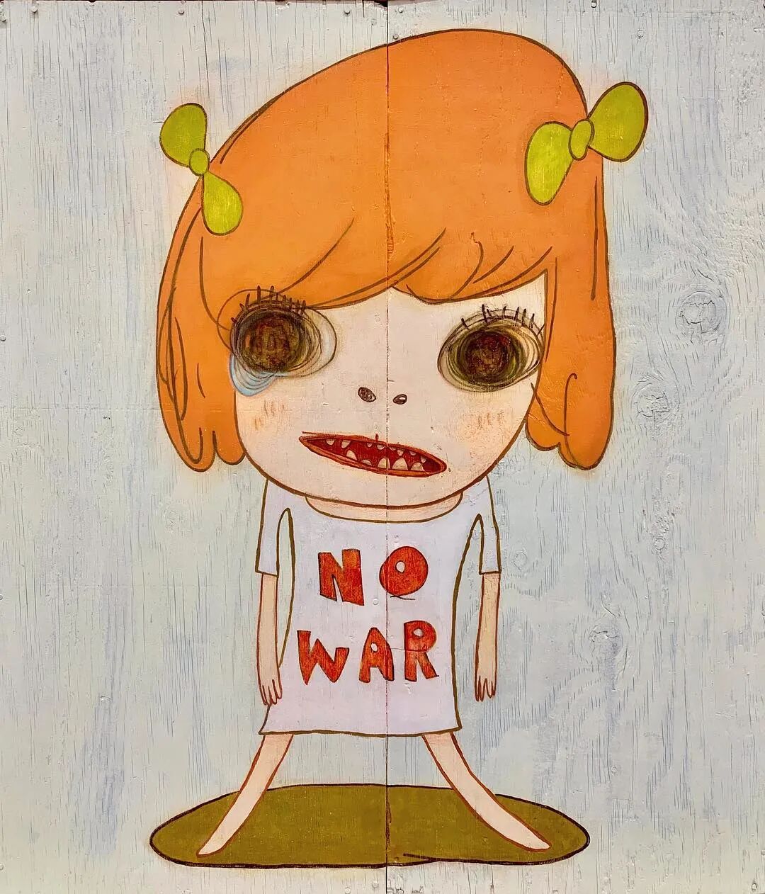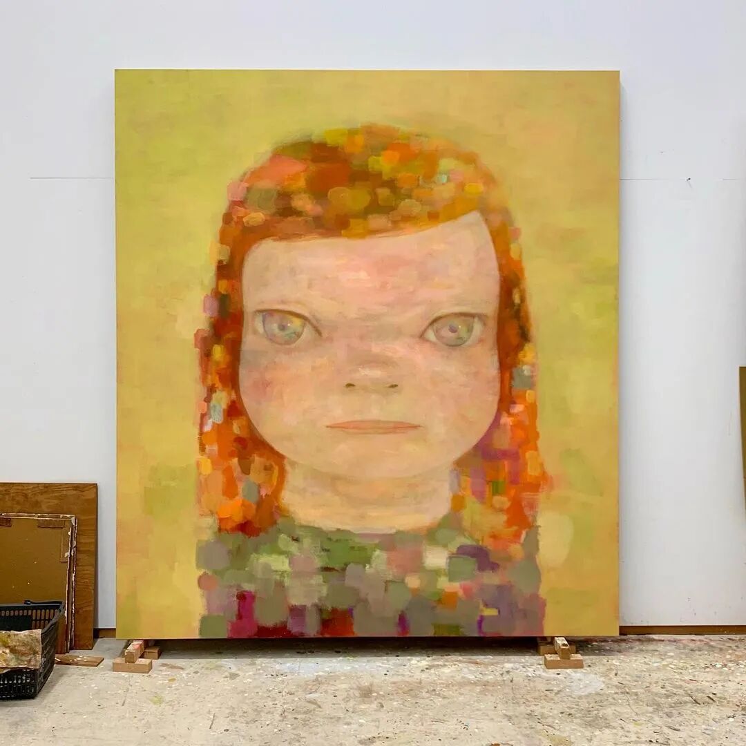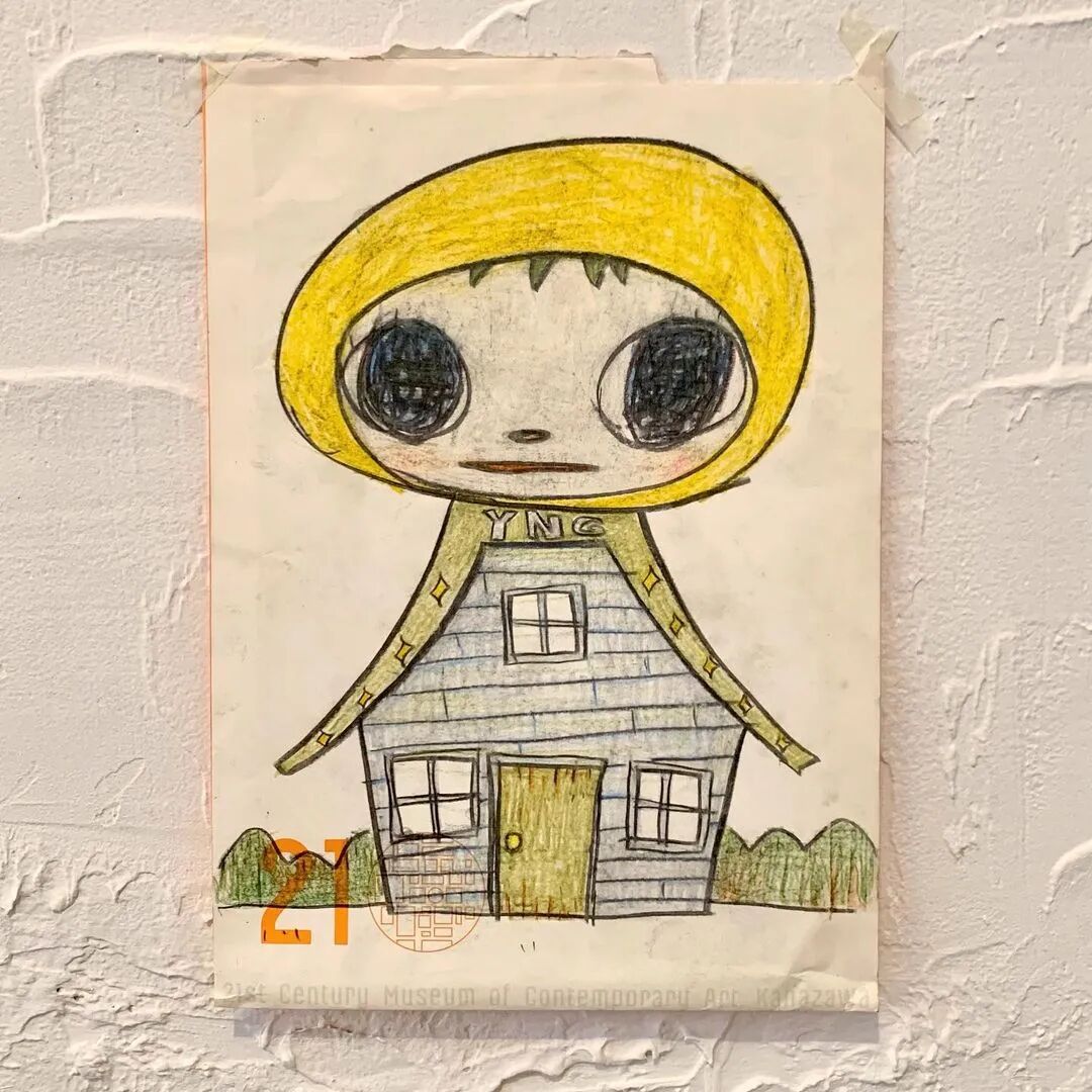 日本当代艺术家奈良美智@michinara3,笔下的小女孩总是有着大大的脑袋,招牌式的斜眼和瘪嘴的邪恶小表情,像成人一样。柔软的线条和温暖的配色与小女孩不友好的表情发生奇妙反应。