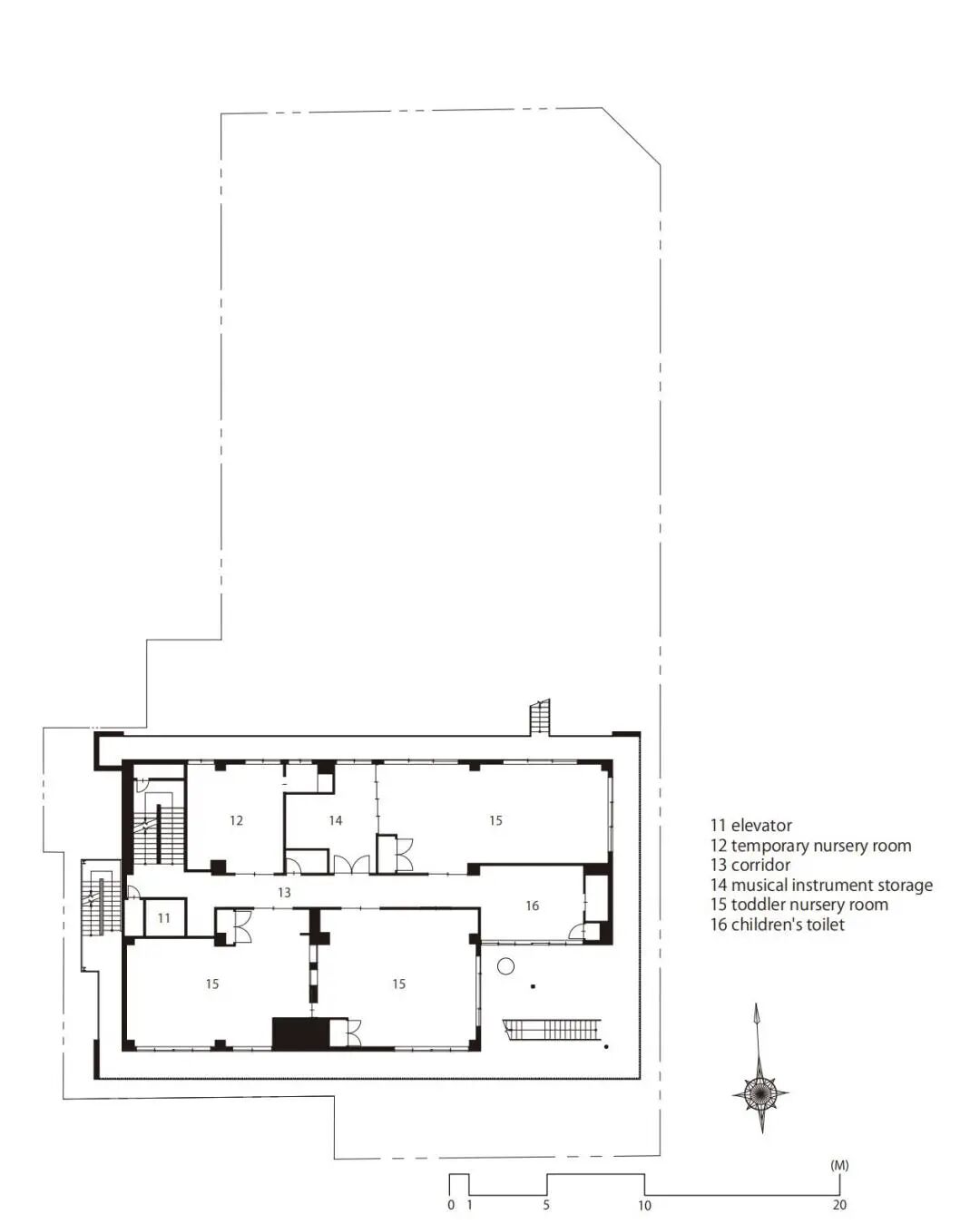 建筑的设计思路在于面向街道开放,让幼儿园孩子的活动流线与社区人们参拜寺庙的流线重合。