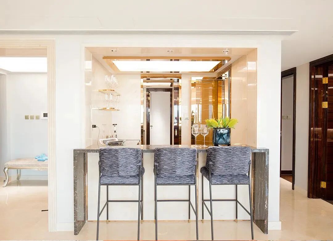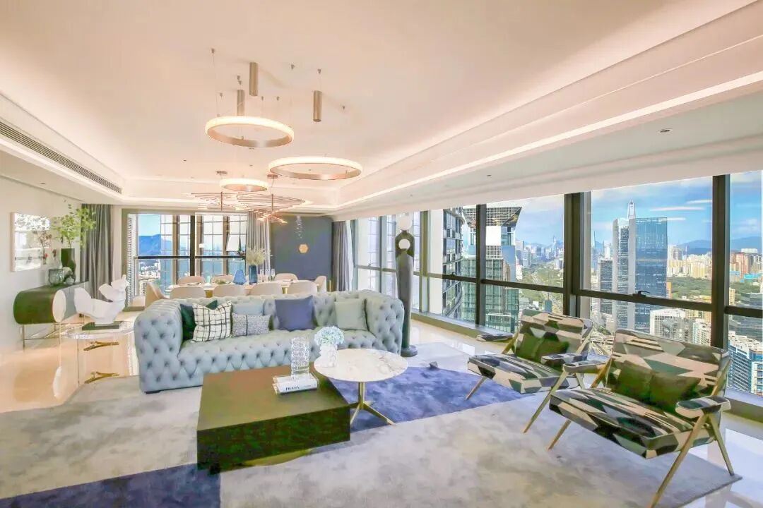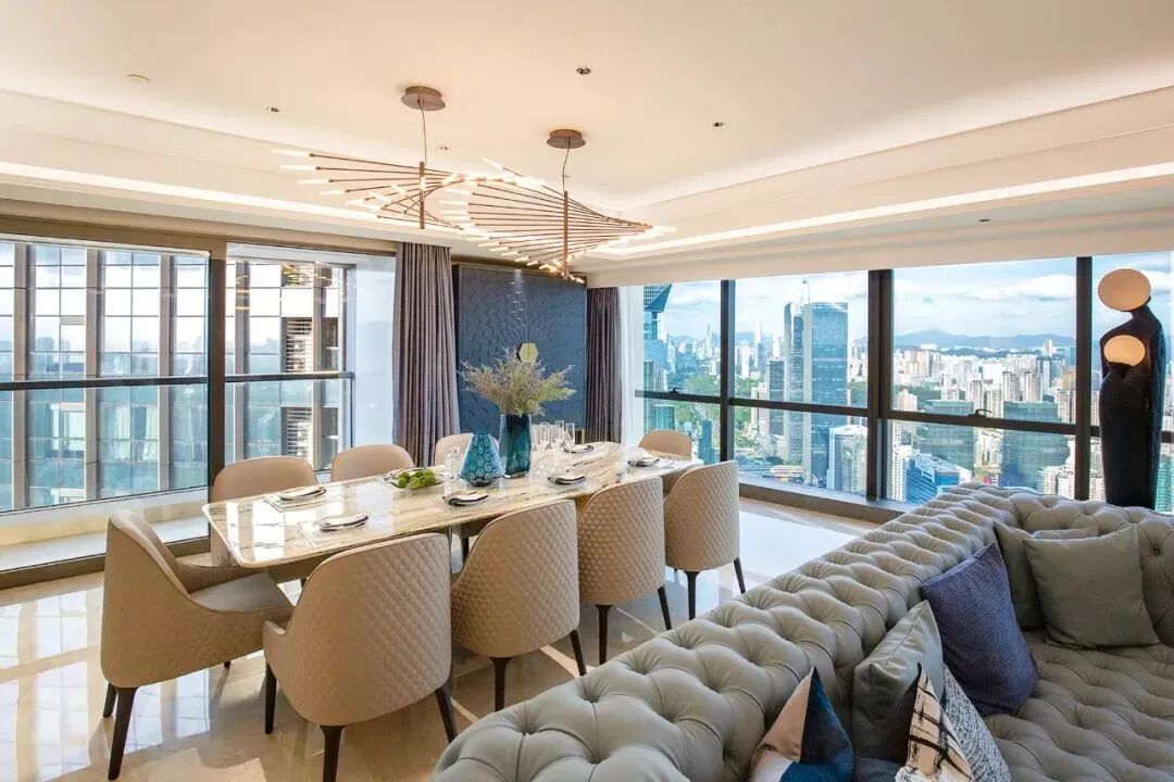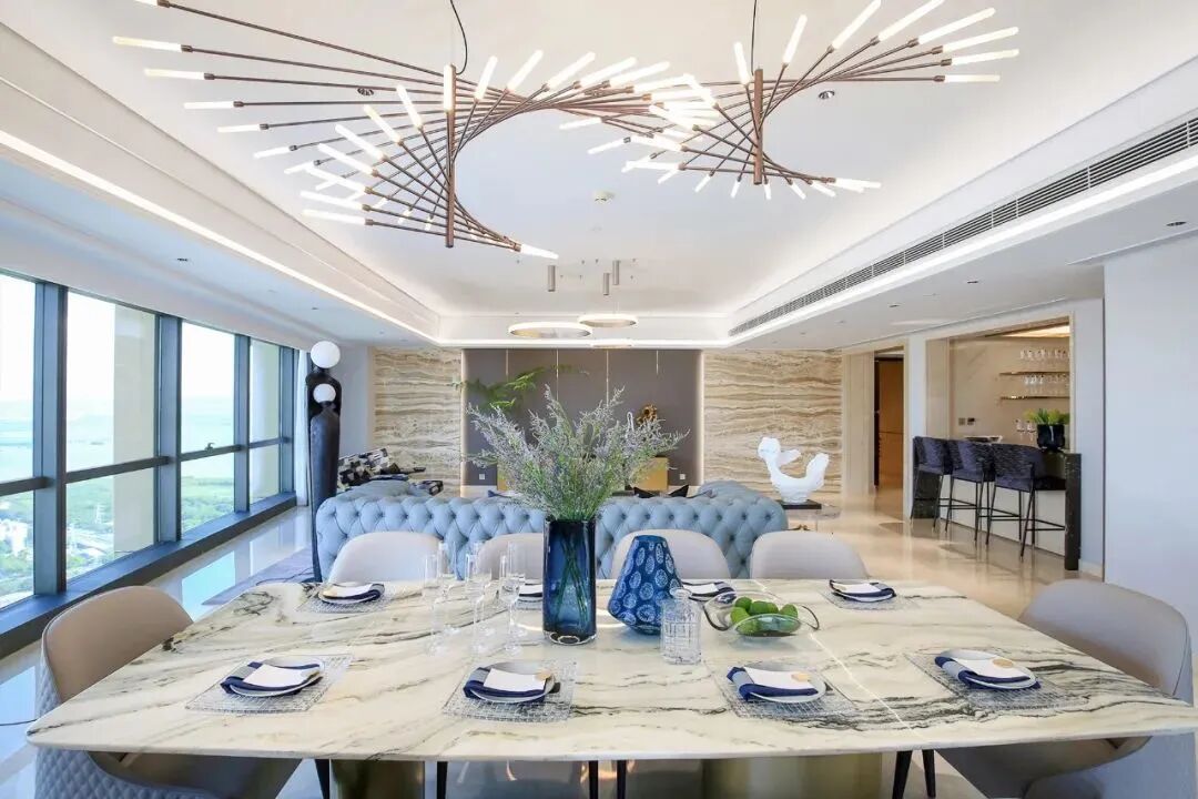 320平的海景大平层,拥有11.8米的大尺度开间,270度的幕墙景观面,“在家里看风景”成为了每日居家体验。