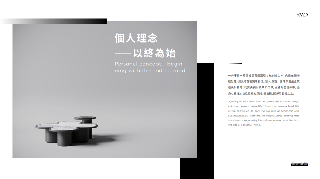 黄志达先生认为,设计与生活息息相关,设计创造着生活的未来。无论是做设计还是管理一个公司,他始终坚持“以终为始”的理念。设计的终点是建设美好的人居生活,想要做到这一点,在设计前、中、后期都要考虑人在这个空间中生活的真正需求,通过设计手段去满足这些需求。首先,绿色健康安全是最重要的,其次,是空间的功能性,包括空间功能分区、动线设置等等。最后,再考量艺术美感,做一些锦上添花的陈设设计加法。