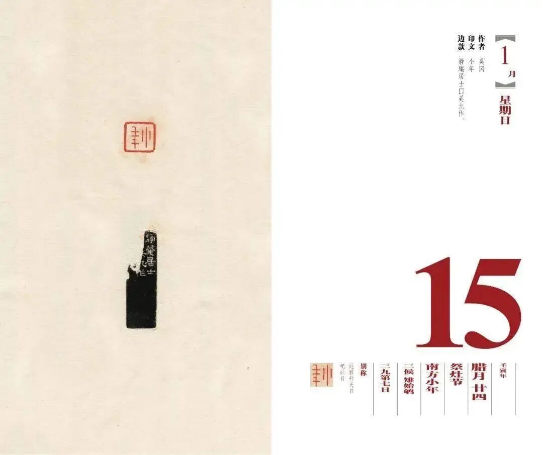 小年祭灶节,日历中选用了奚冈所作“小年”朱文印。