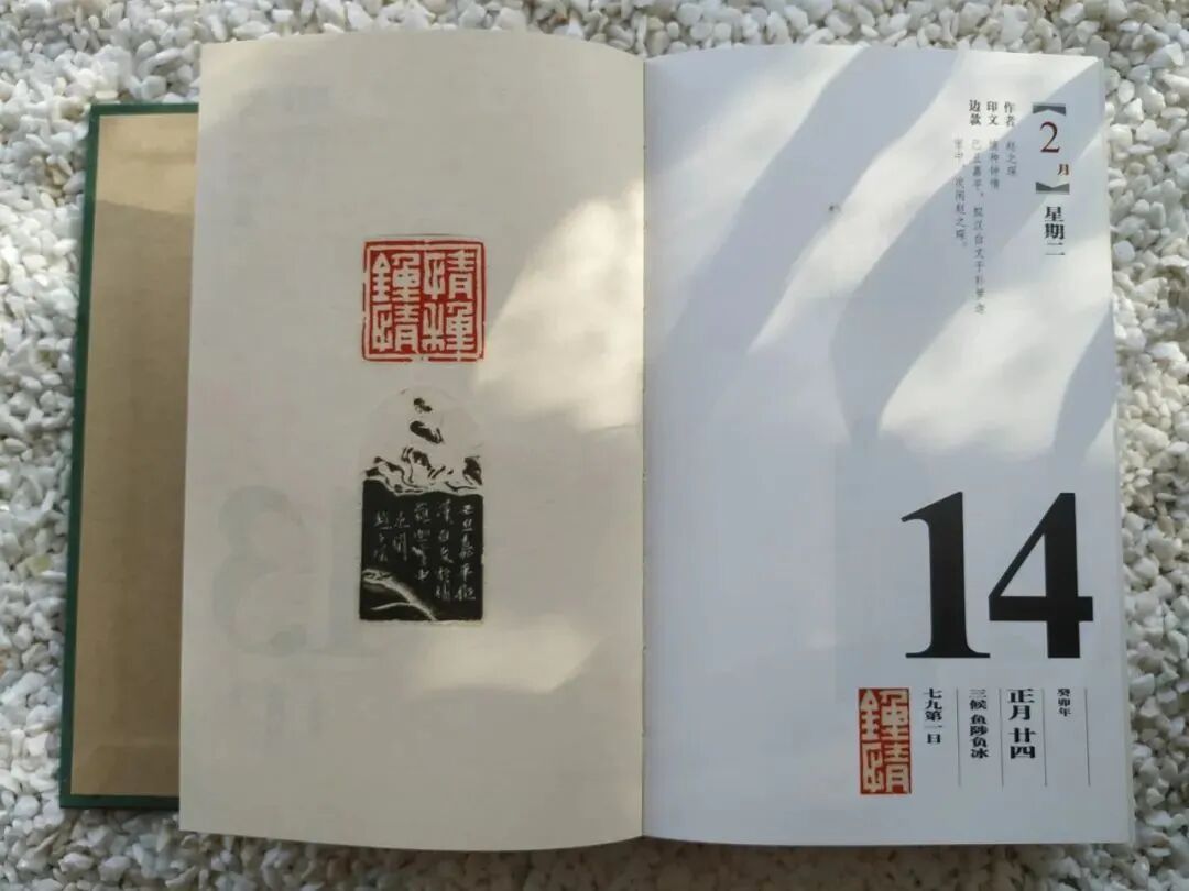 今年的篆刻日历,一如既往保持了往年的高水准,从封皮到内页都让人感觉到编者的用心。