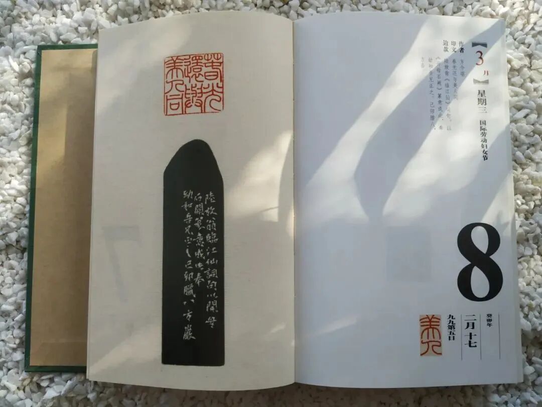 这厚厚的一大本《篆刻日历》,拿在手里就能感受到满满的匠心,从构思到成品,它的背后也着实凝聚了编者太多的时间与心血。