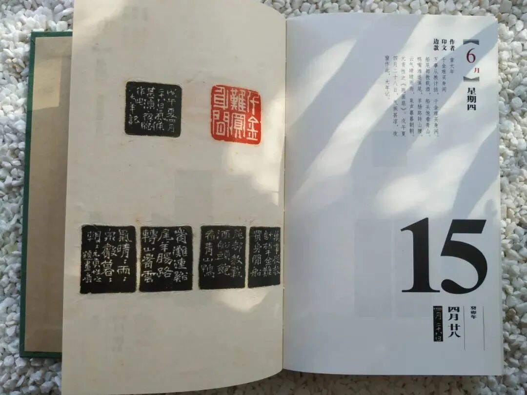 不知道有没有朋友集齐了这四套篆刻日历,这厚厚的四大本,满载着历史的厚重感,放在家里收藏,着实很有纪念意义。