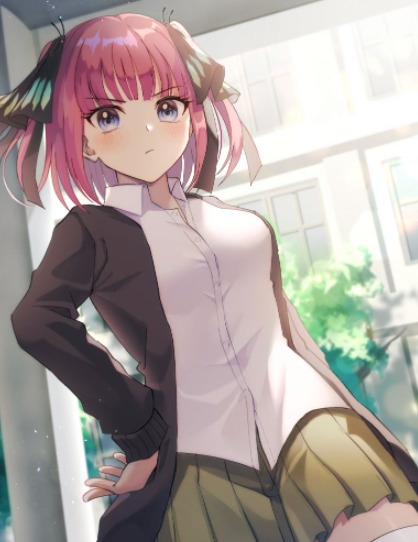 中野家五胞胎的次女,说话呛辣、总是有事没事对着男主风太郎说尖锐伤人的话,在与男主第一次见面的时候就演出了一副大小姐看不起男主的模样,但其实她的心思很细腻,平时表现出强势,反过来说正代表了内心的加倍的脆弱啊,在暗恋对象面前坦率又容易害羞,才是卸下平日戒心后,最原始不矫饰的二乃。