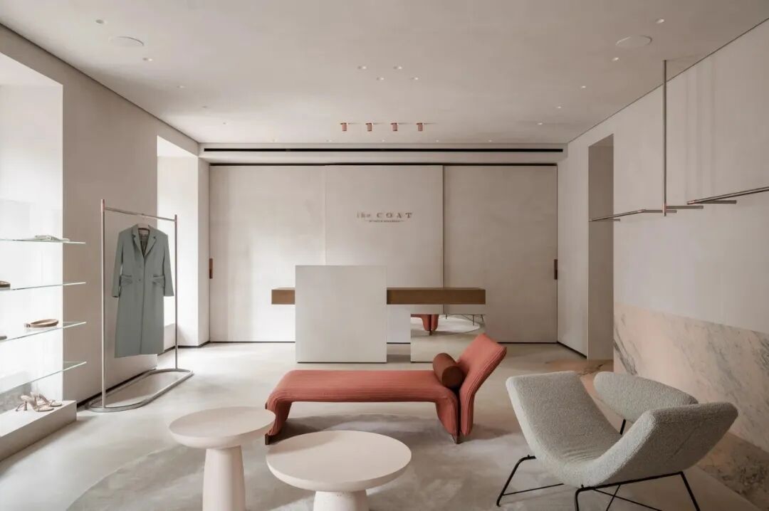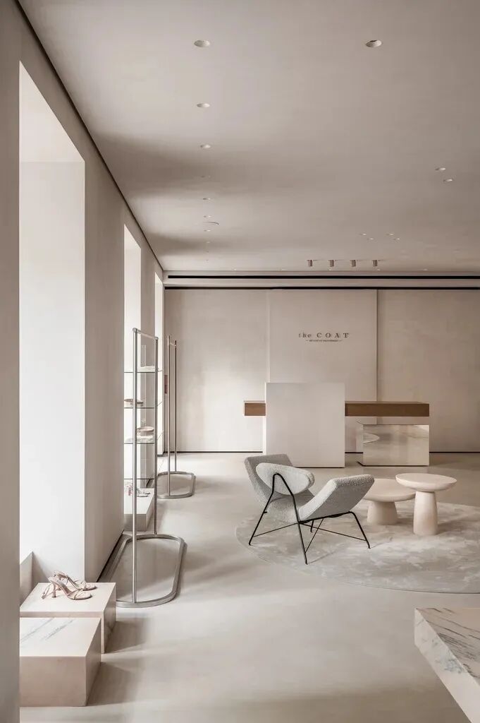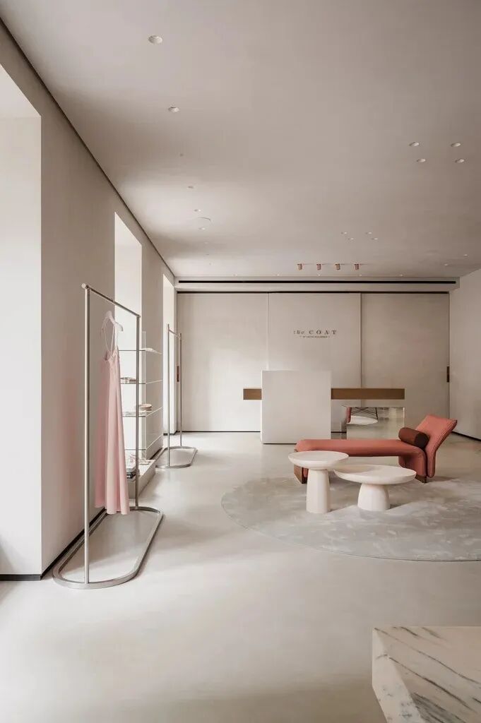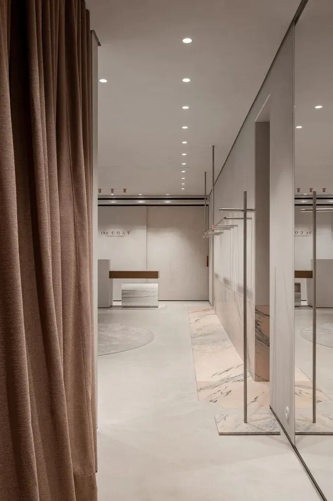 我们努力传达品牌的美学,旨在为游客创造一种全新的、令人耳目一新的体验。大理石地板和墙面为衣服提供了无缝的背景
