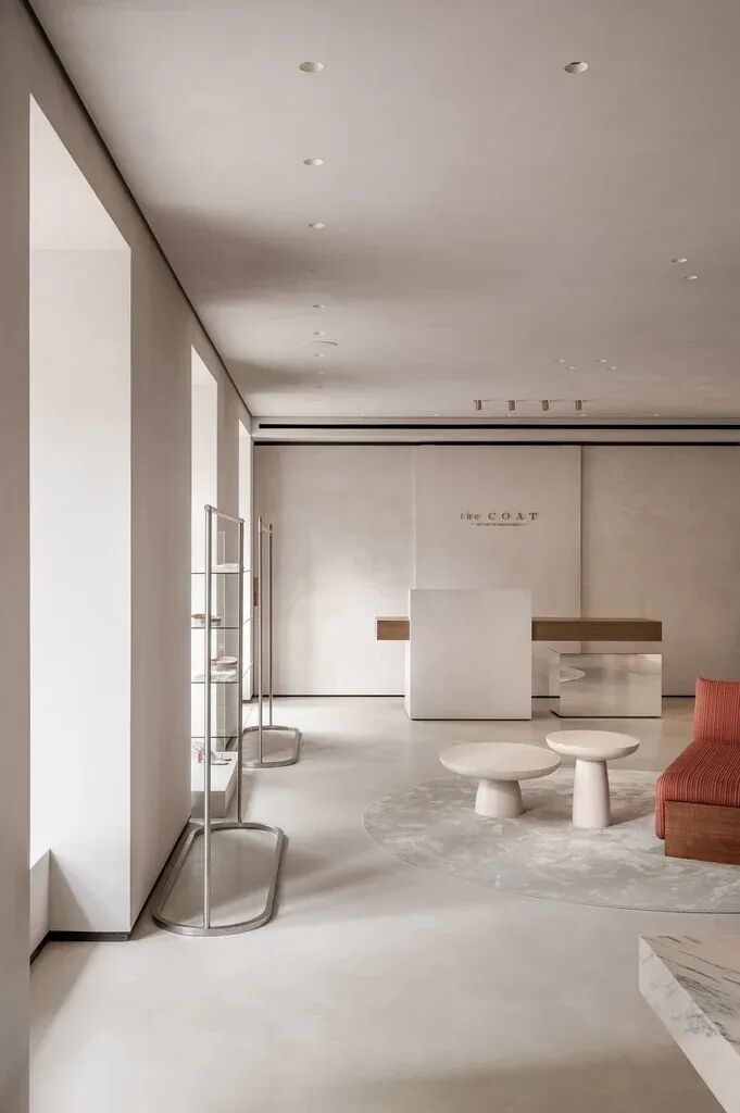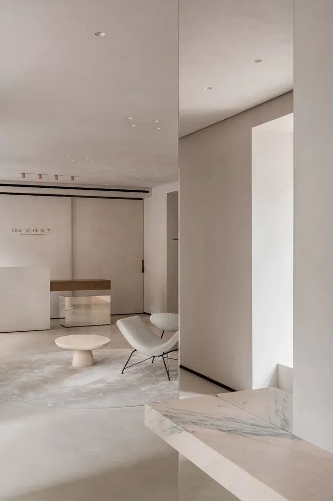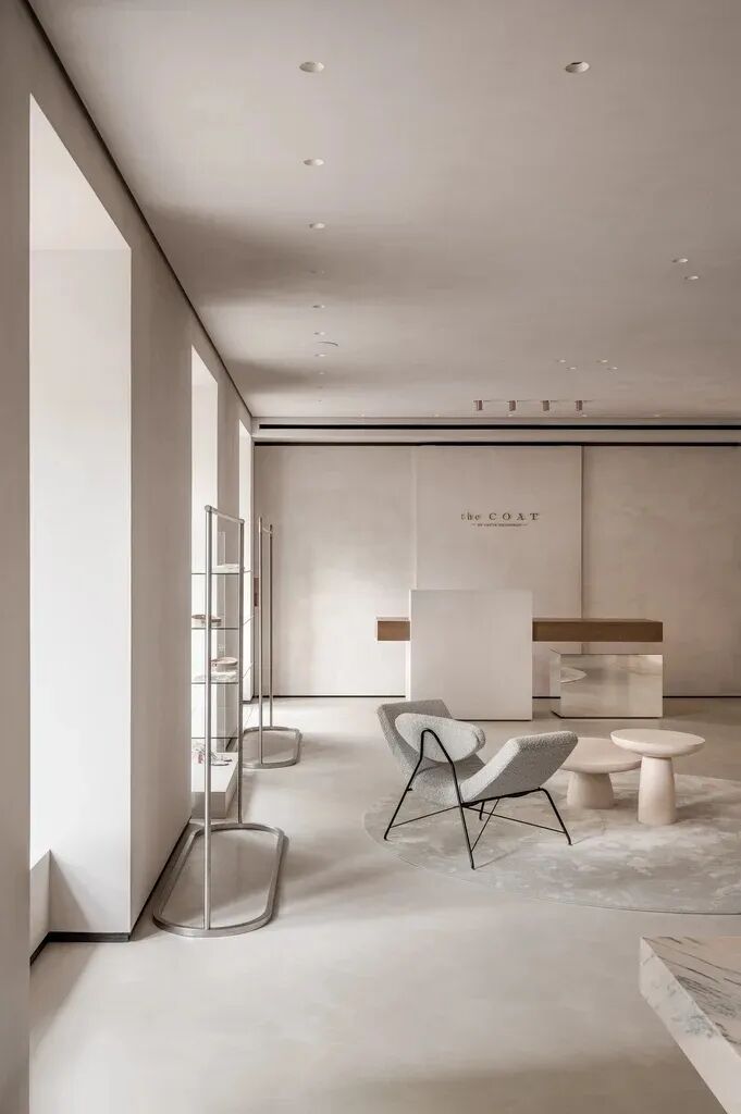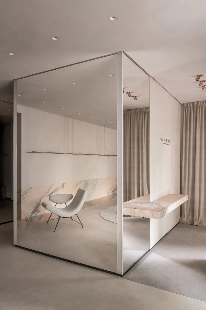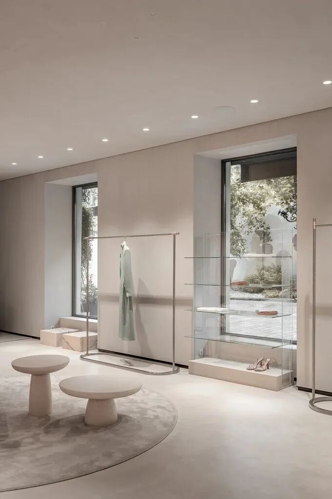我们努力传达品牌的美学,旨在为游客创造一种全新的、令人耳目一新的体验。大理石地板和墙面为衣服提供了无缝的背景