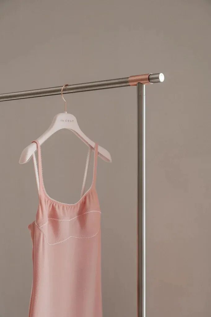 All the elements of the retail equipment were produced according to our drawings, exclusively for this project. The clothing racks were made from stainless steel and finished with copper details.