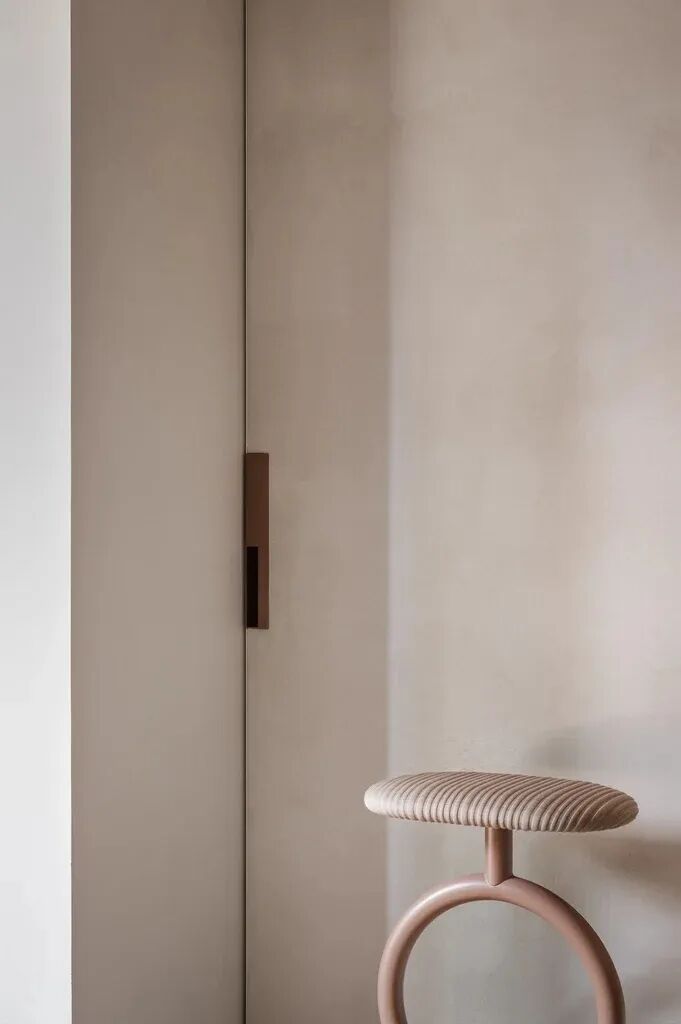 我们用石灰灰泥覆盖墙壁和天花板,并浇筑了微水泥地板。手工挑选的颜色-中性灰色和砂质色调-将墙壁、天花板和地板连接成一个连续的空间,优雅而不太引人注目