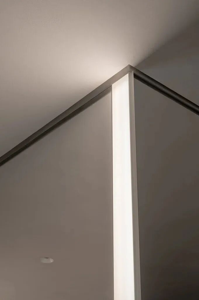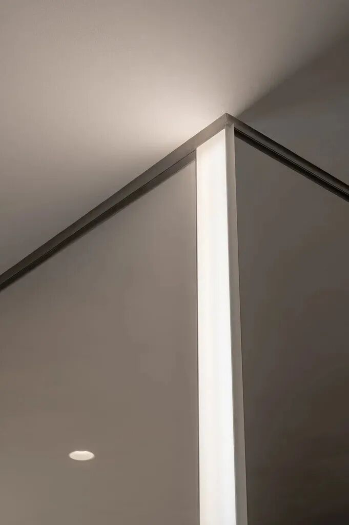 照明设计值得特别注意。鉴于天花板较低,我们避免使用展厅常用的母线。相反,我们选择了具有最高显色指数且无装饰的嵌入式洗墙机照明。后视镜升级为内置漫射照明配置文件。该解决方案在安装过程中提供了一种既美观又均匀的光线,这对销售至关重要。镀铜灯是装饰性和功能性元素,支持展厅的美学