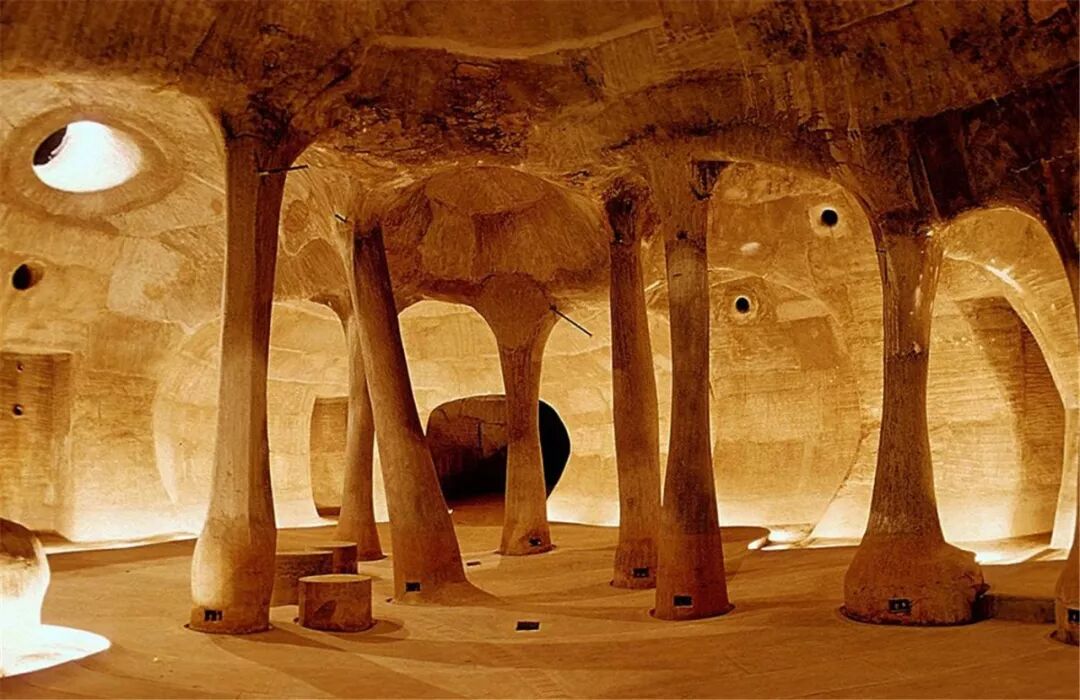 建筑体现印度的节俭精神——外部庭院和小径地面材料,皆取自于人们遗弃的废品,通过手工艺加工激发了它们的全新功能。在设计中,多西采用了长向的筒拱作为建筑构图的主体,拱顶的形状、结构以及基座都与印度神庙相似。