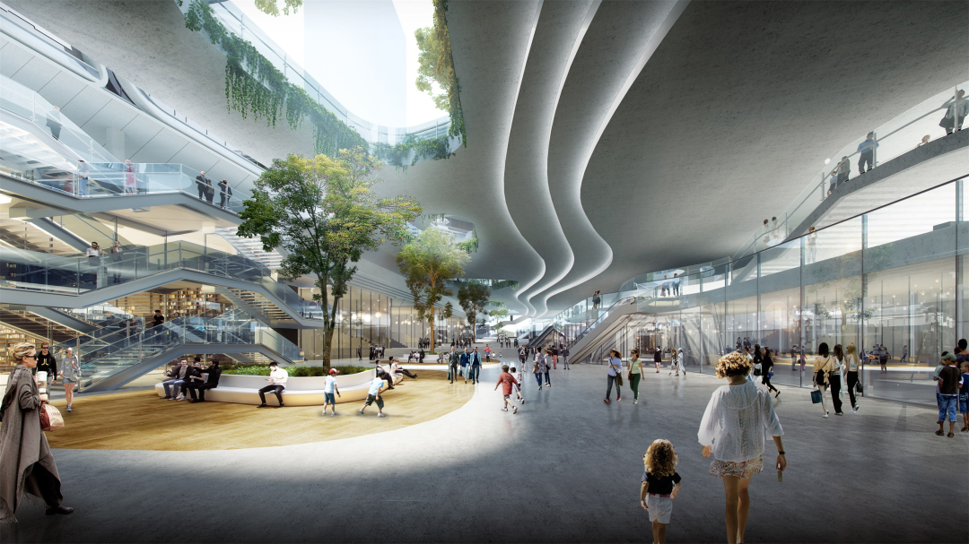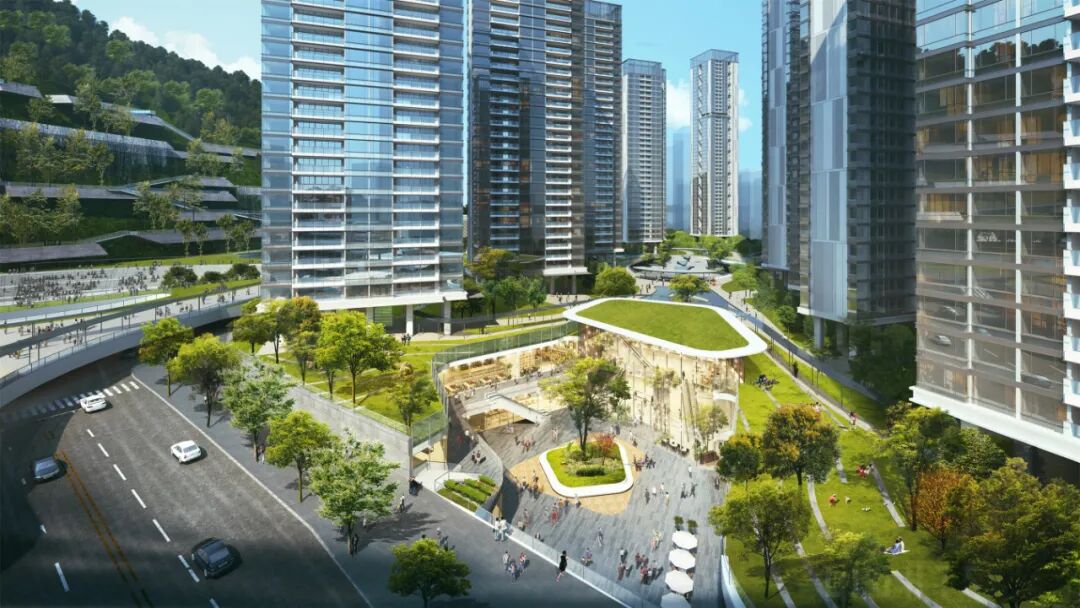 RLP深耕TOD领域数十载,将成熟经验引入中国主要城市,其代表TOD项目包括上海TODTOWN天荟和广州天环等。而在赤湾上盖项目中,设计团队充分考虑到未来将会有来自项目内住宅、学校、周边商务区以及各项公共交通带来的大量人流,以都市“绿芯”为构想,以左炮台站及相邻公共交通体系为核心,串联居住社区、教育区、都市共享区、文体活动区及景观渗透区等多个板块,最大化轨道枢纽的核“芯”效应。