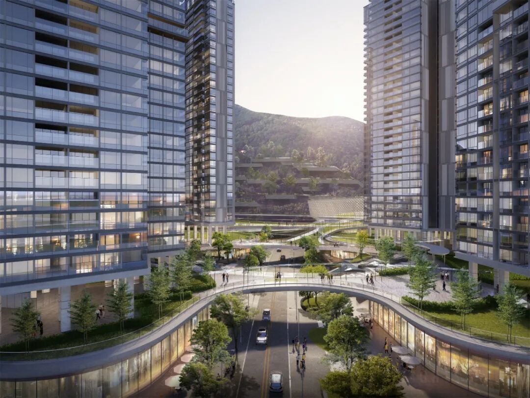 RLP从“复山蕴城”的概念出发,修复项目地块一旁的自然山脉,将绿色景观多维度地融入社区。赤湾港口工业区原址上规划了全新的住宅、办公、商业、学校、公园等功能片区,城市面貌焕然一新,落成后项目的绿化覆盖率超30%。建筑师更萃取周边自然、人文、商务和艺术价值,不仅旨在打造深圳生态TOD地标,更为大湾区的居民创建一种零碳环保的生活方式。
