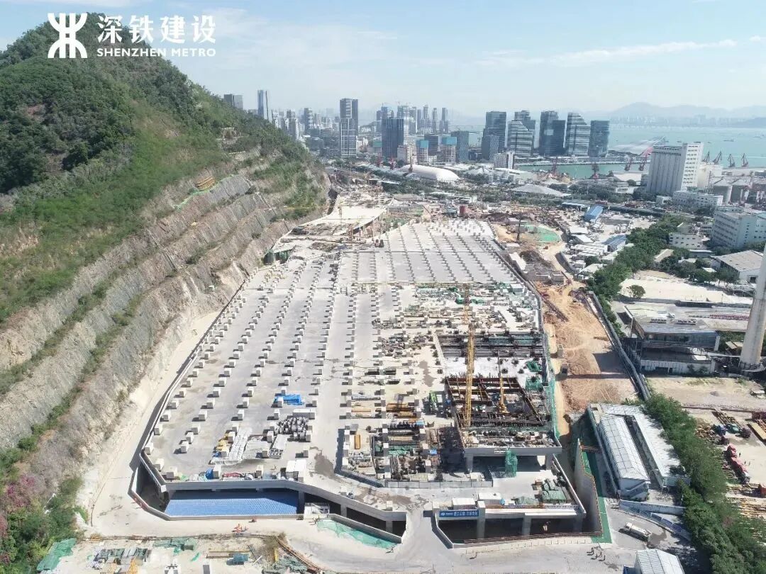 位于南山区蛇口港北侧,项目作为深圳地铁12号线线路起点处,是全线路唯一配备的停车场,也是目前深圳在建的规模最大的地铁停车场,其总占地面积24.1公顷,相当于34座足球场的大小。目前车辆段运用库区已全面封顶。