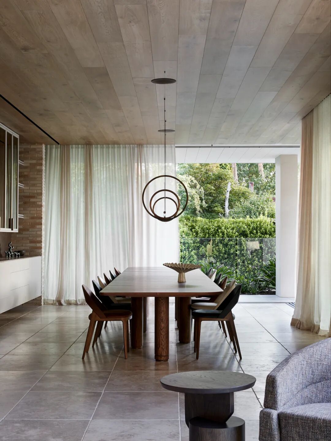 The client wanted a home for a close-knit children's community that could host large gatherings and comfortable accommodations. To achieve this, the designers worked hard to articulate each of the three levels and ensure a natural balance between private and shared spaces. Upon entering the first-floor home, a light-filled passage leads you through a series of interior courtyards and into the generous kitchen, living and dining spaces. Extending to an outdoor dining patio and north span garden, this fun "hub" features a swimming pool, spa and basketball court. A home office and large home library accommodate working and learning from home, tucked away at the front of the home, away from activities.