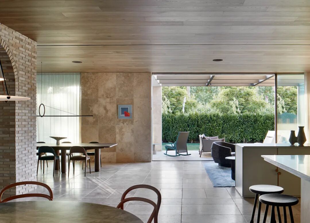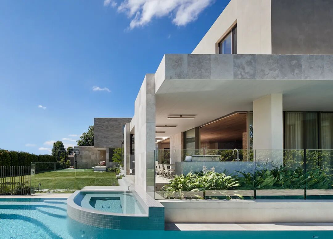 客户想要一个可以举办大型聚会和舒适住宿、紧密联系的儿童社区的家。为了实现这一目标,设计师努力阐明三个层次中的每一个,并确保私人和共享空间之间的自然平衡。进入一楼的房屋后,一条光线充足的通道将带您经过一系列内部庭院,进入宽敞的厨房、起居和用餐空间。这个有趣的中心”延伸到一个户外用餐露台和北跨花园,设有游泳池,水疗中心和篮球场。家庭办公室和大型家庭图书馆可容纳在家工作和学习,隐藏在家的前面,远离活动。