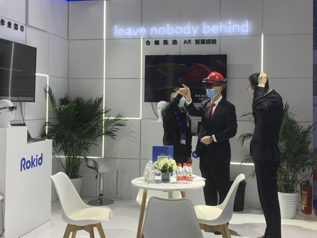 Rokid 5G+AR工业企业数智化转型解决方案赋予普通工人解决棘手问题的能力,通过专家远程指导,AR眼镜将现场人员第一视角的画面共享给专家。