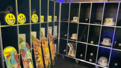 他的画作、广告牌、雕塑被巧妙融合在场景中。他笔下的的三眼兔、奶牛女孩、龇牙骷髅头等,也已悄然将视觉效果与美国波普偶像破坏者的幽默暗示结合。