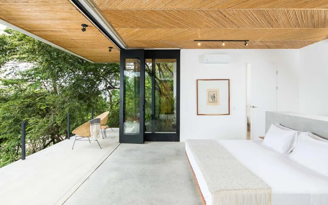 每个房间都有自己的屋顶露台,上面种满了茂盛的植物,遮阳帆,并配有藤制家具,这些家具产自哥斯达黎加以其手工艺而闻名的 Sarchí 小镇。热带度假胜地的建筑师在整个项目中都使用了当地采购的材料,例如用“caña brava”(一种草)制成的天花板以复杂的鱼骨图案安装。