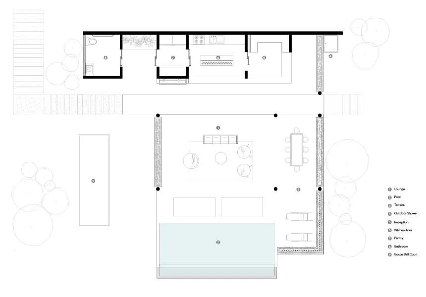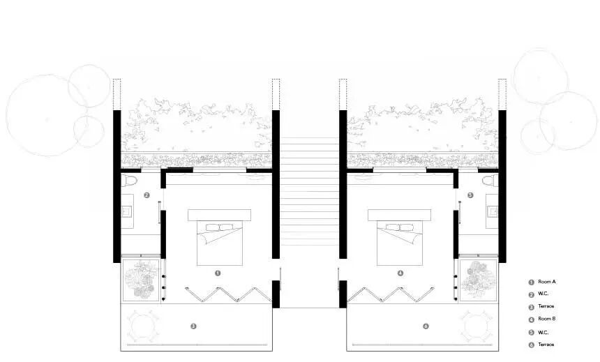 酒店客人可以居住在独立的凉亭式结构中,也可以退回到私人区域,还可以与周围的自然环境互动。宽敞的客房可以完全打开,前面是一个海景私人露台,后面是一个种有热带植物的花园。甚至浴室也采用开放式布局,让客人有机会一边淋浴一边聆听海浪拍打的声音。