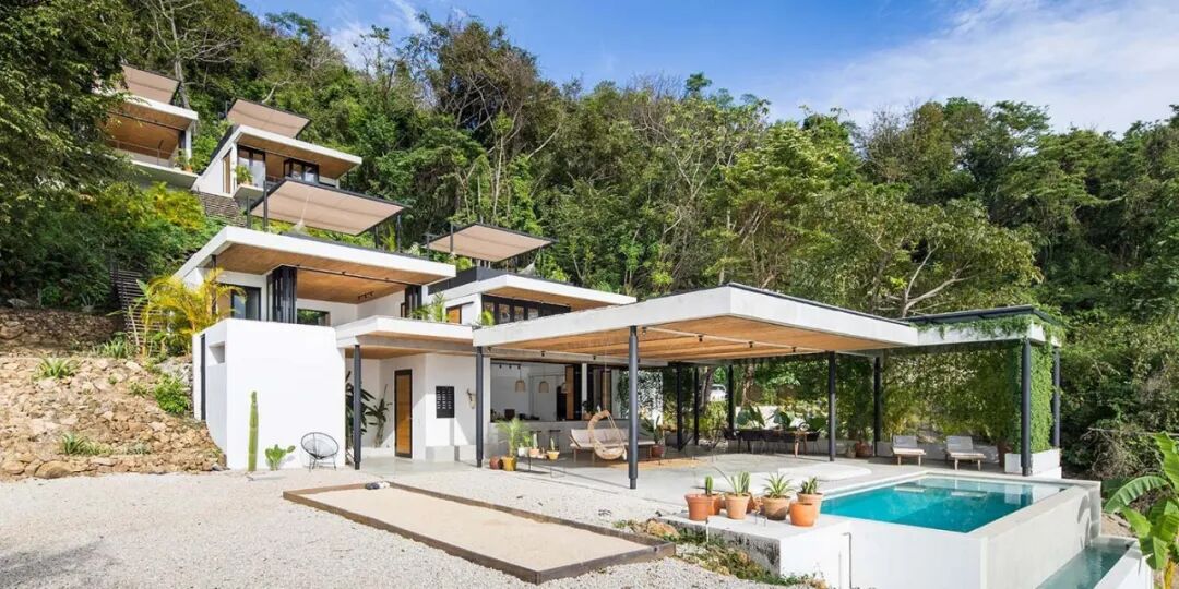 沿着陡峭的山坡而下,俯瞰大海,Mint Santa Teresa 是一家新酒店,融合了欧洲设计美学和哥斯达黎加工艺——旨在确保客人能够与自然、彼此以及当地人交流。瑞典业主爱上了圣特雷莎这个冲浪天堂以及新兴的瑜伽社区。受希腊建筑、极简主义和斯堪的纳维亚设计的启发,他们委托了著名建筑设计公司 Studio Saxe 来设计。