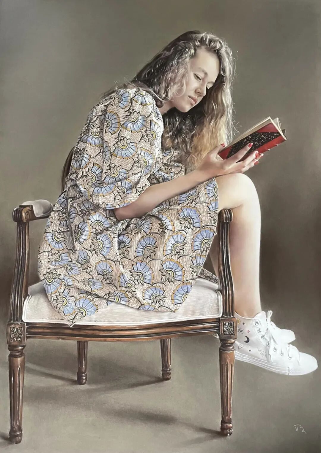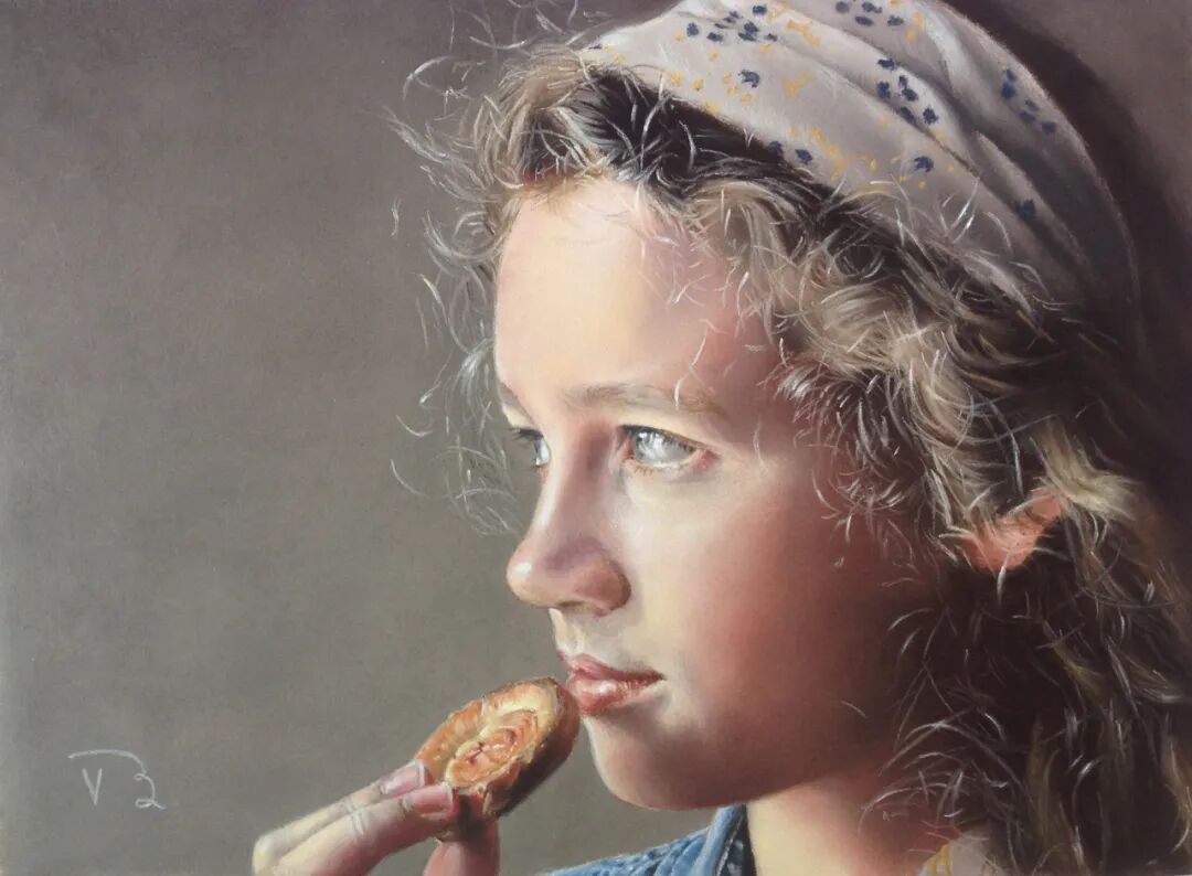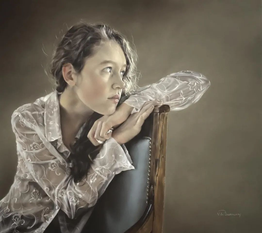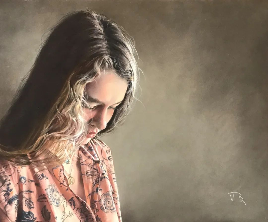 自学成才的艺术家,Véronique du Boisrouvray为了自己的乐趣,长期用粉笔或石墨画她孩子的脸。偶然的机会,她发现了粉彩画,以及与之相关的颜色。这种媒介真正彻底改变她的工作,成为她永远不会离开的激情。