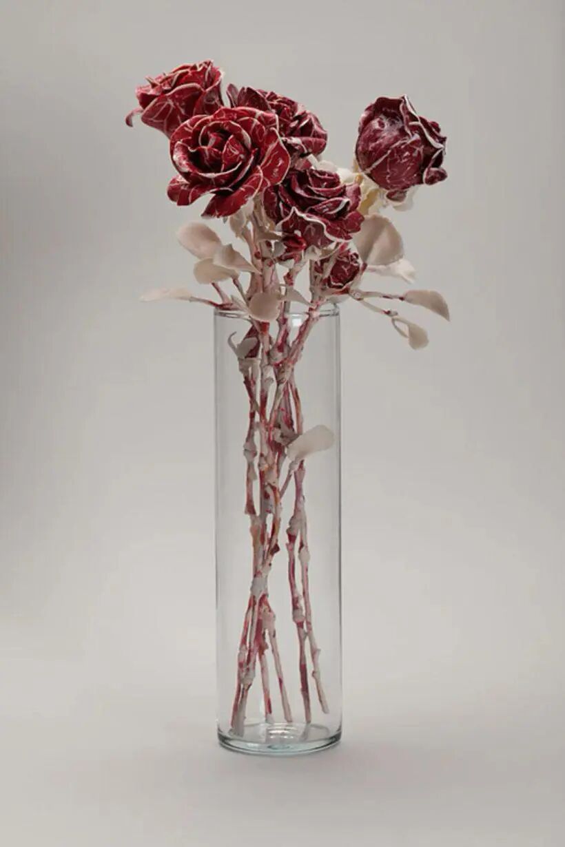 罗尼·兰达以肉类为主题进行创作,源自2015年前后,这组“肉雕作品”一经推出,就受到人们极大的关注,这些雕塑作品并不是在模仿肉类的形状,而是用肉类的色彩和质感,去呈现特殊的水果、水彩和花朵的外形。据这位雕塑家介绍,她的创作灵感来自波普艺术和16世纪荷兰静物画作,在16世纪荷兰静物画作中,就可以找到许多描绘肉类题材的绘画作品。