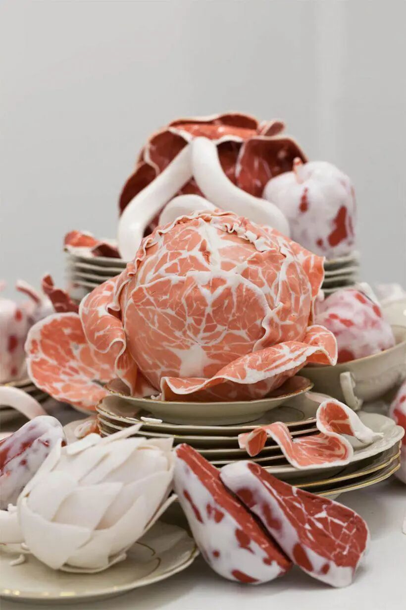 在过去几年里,罗尼·兰达并没有取得太大成就,自从她开始创作肉类题材的雕塑作品后,才逐渐被人们发现和了解。值得一提的是,这位艺术家使用的材料为聚合粘土,也就是俗称的软陶,这是一种人工合成的材料,外观看起来像是橡皮泥,实质更接近塑料,常常被雕塑家拿来使用,制作好的软陶作品,通常会被拿到烤箱进行简单烘烤,然后可以变成色彩鲜艳,质地坚硬的作品。