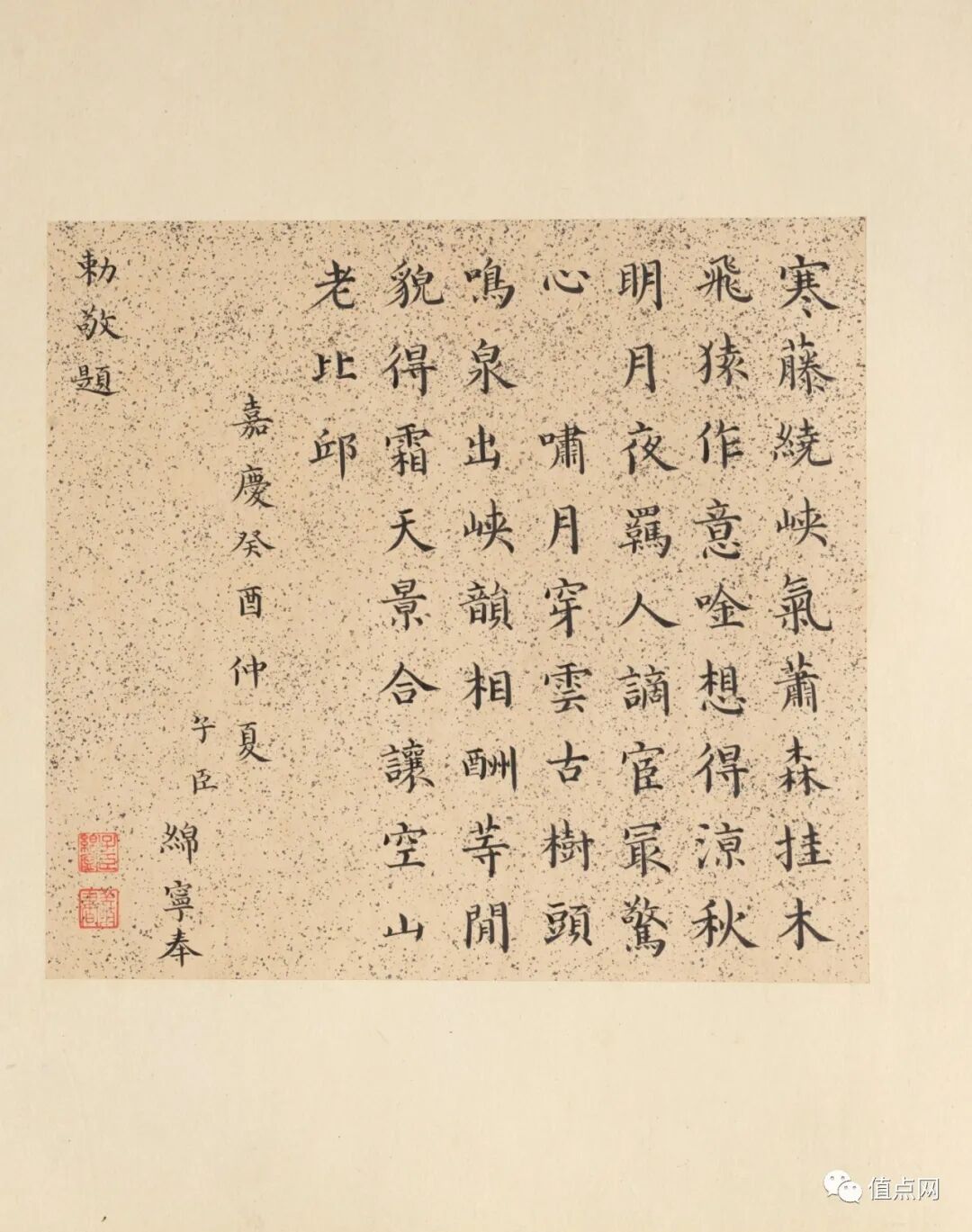 此外,册页还有「嘉庆御览之宝」与「茂对时 育万物」印。后者语出《易传》对无妄卦之解释:「天下雷行,物与无妄。先王以茂对时育万物」,不知为何人之印。