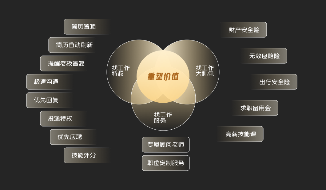 我们从聚焦化、场景化、系统化、品牌化4个方向出发,通过不断的设计实验,重新塑造了新的求职会员,解决了大部分用户现阶段的痛点,整体收入也有了大幅度的提升。