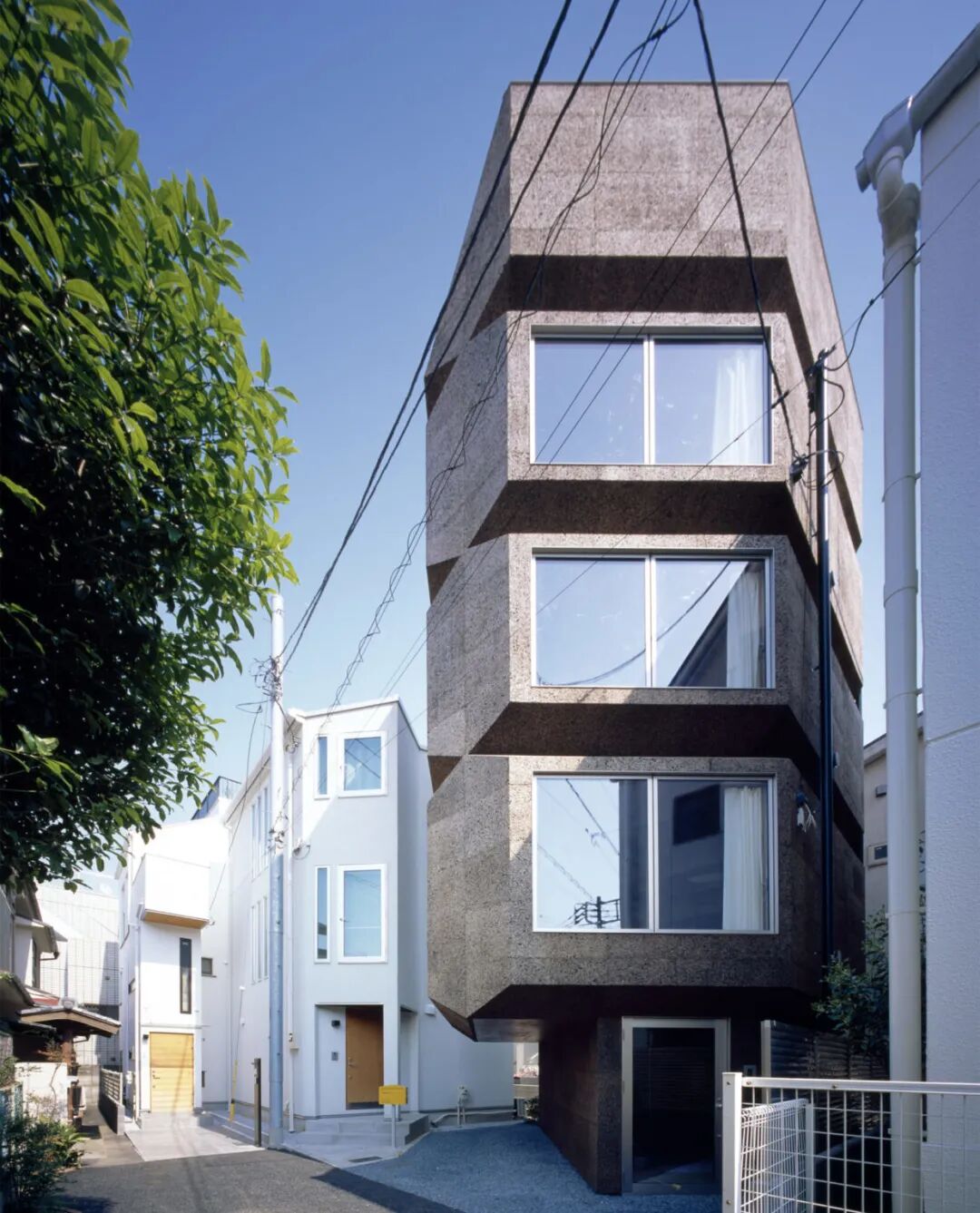 这座新住宅建在东京市中心的一块狭窄地段上,突破了软木建筑的界限,带有粗野主义灵感的结构耸立在附近的公寓楼之上,但软木表面比混凝土更友好,建筑师选择了较窄的八角形结构,而不是常规的矩形平面图,以尽量减少周围较短邻居的阳光损失。
