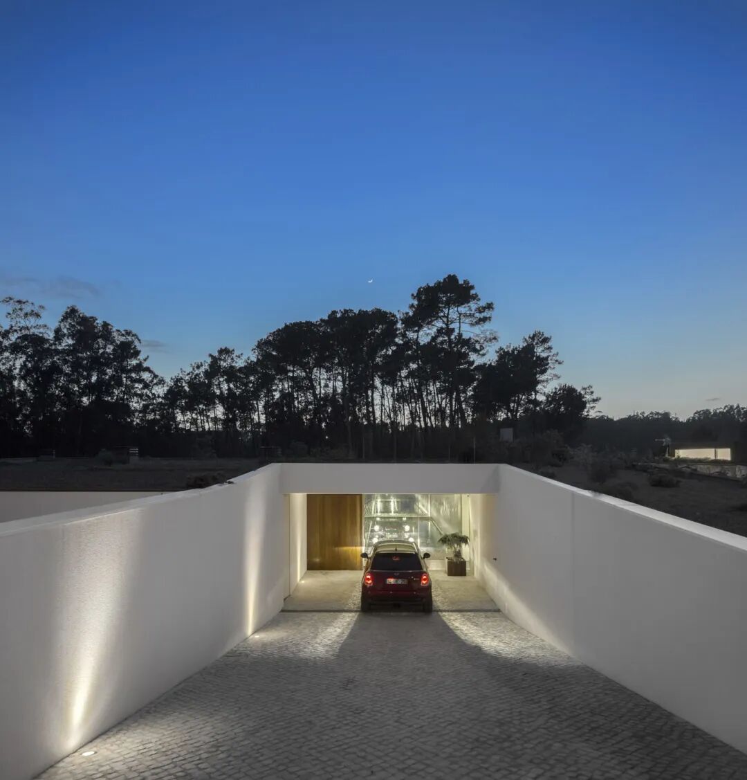 这所房子是位于莱里亚的一栋单户住宅,由Contaminar建筑事务所设计。东立面的主入口处感觉不到房子的存在:坡道交替指向离散的入口和绿色屋顶,这使得房子与景观融为一体。这些坡道上的地板和墙壁上覆盖着砾石和石头,使房屋的这一部分更加不透明。西面几何图形更加清晰,绘画更加明显。一系列空隙和简单的体积允许私人封闭空间的内部组织与房间的开放性相结合。