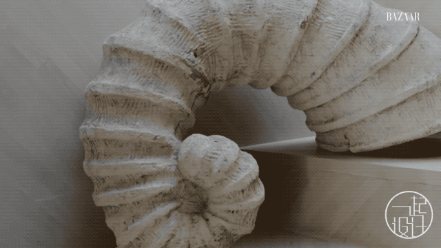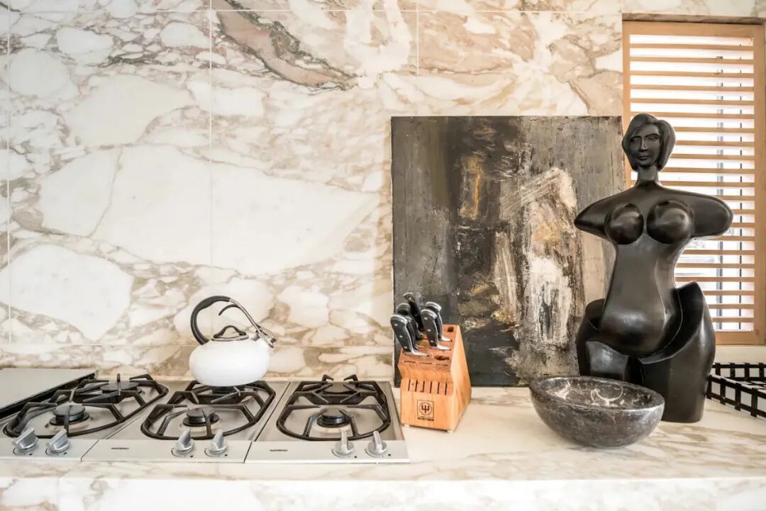 树旁的书柜由石灰石制成,是Kelly在巴黎跳蚤市场淘到的。但是桌子上的静物却都是出自Kelly之手,旨在传达出一种时间静止的永恒感。