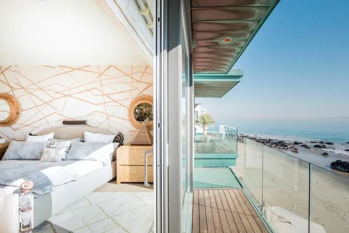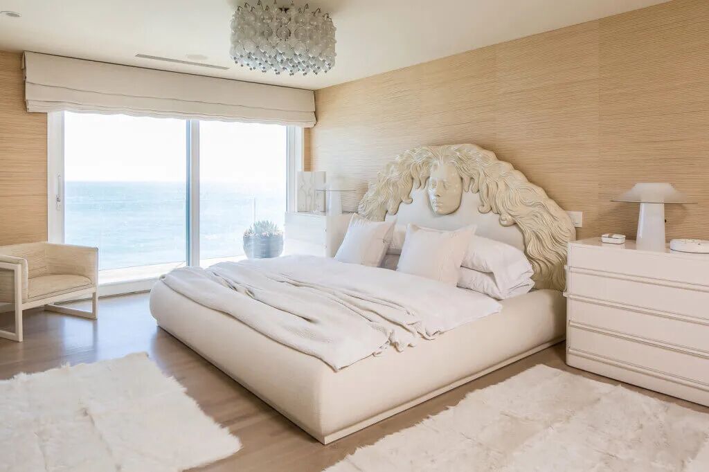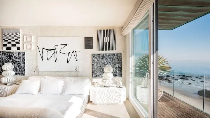马里布别墅拥有5间卧室,都延续了空间的暖白色调。每个空间铺有柔软的地毯,仿佛赤脚踩在沙滩上,舒适愉悦。卧室中大部分家具都是Kelly亲自打造,只为营造出符合马里布调性的空间。