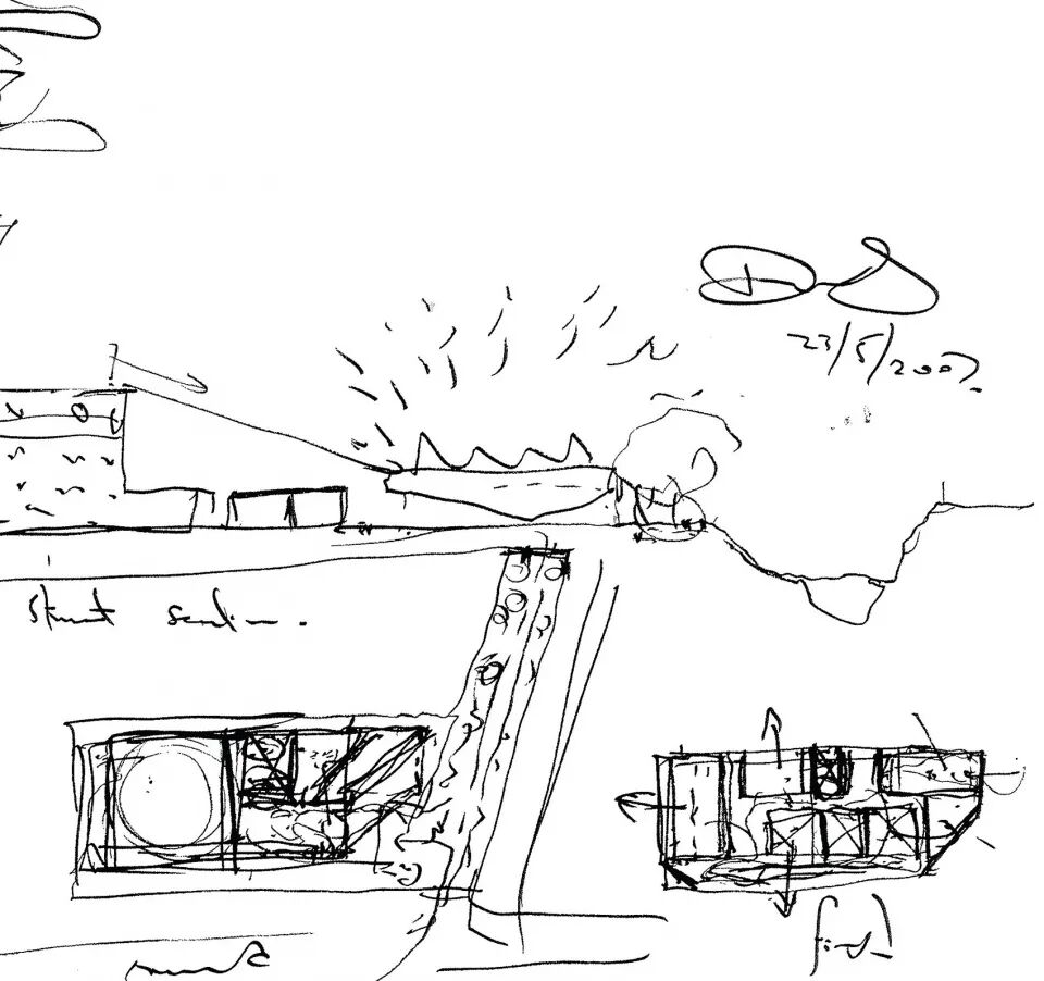 整体效果让建筑看起来像是一块切掉与人们接触部分的棱角分明、粗糙、闪闪发光的岩石。这种光滑与粗糙构成了Ruby City标志性的特征。“厚重”的折线形斜屋面赋予了建筑别具一格的外观造型,同时强调了向上的态势。屋顶的两扇天窗抑或叫做采光塔,形成了动态的屋顶轮廓线。