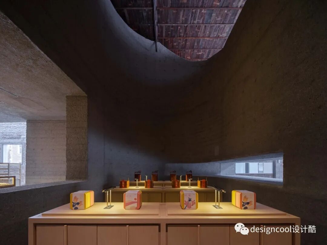 Traversing through the new concrete object and experiencing the interstitial spaces between the new insertion and the old building brings a sense of connectivity between past, present, and future and gives this historical Beijing pastry brand a new home.