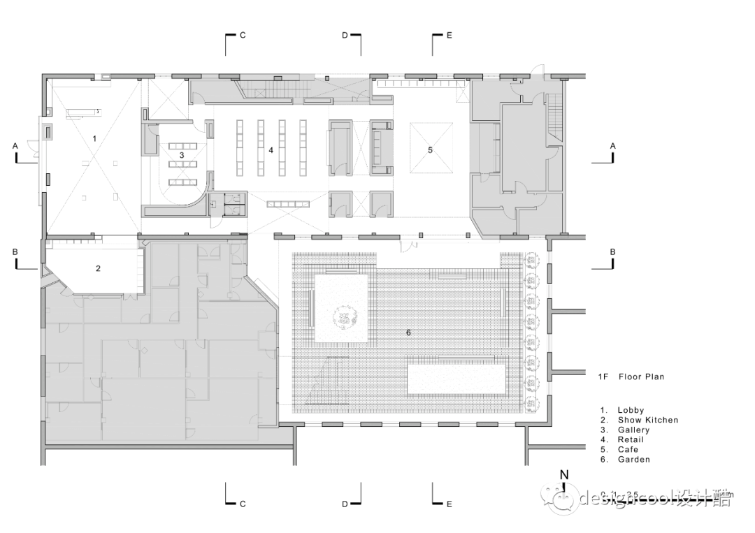 The ground floor contains the exhibition area, the flagship store, the garden and the cafe while the second floor is mainly the head office.