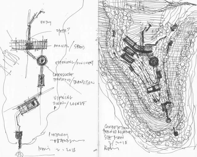 同时,建筑师还将主要的品尝区域部分置于地面以下的空间,并将其环绕于一个水景庭院来排布设置,以营造独特的参观体验。