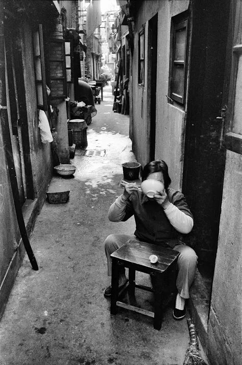 “……傍晚日光西射,建筑物构成阴带,屋里的人都螃蜞出洞那样地坐卧在弄堂里。”