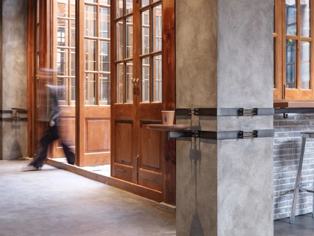 如恩回溯建筑的本源,在室内置入了一个原始的屋舍。这个简易的“庇护所”作为动线的交汇之处、空间的视觉焦点,是咖啡师精心调制饮品的吧台区域。