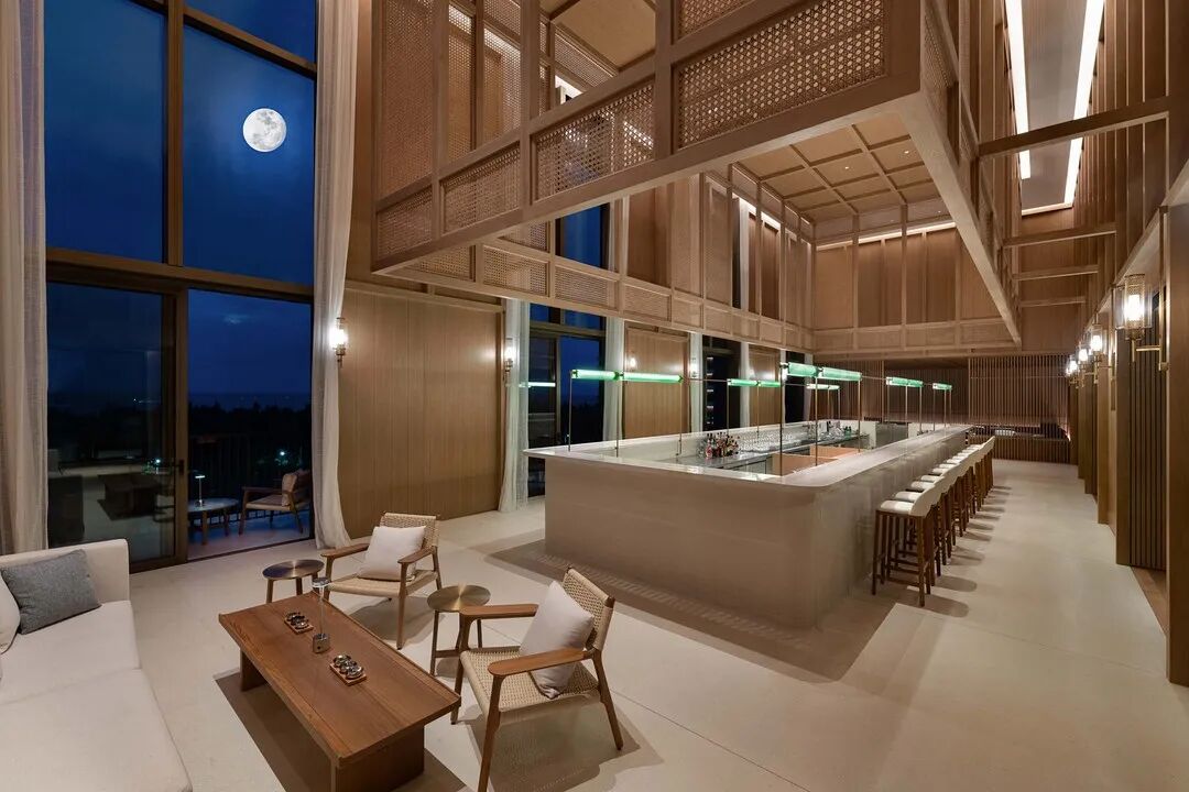 酒店共设有343间客房,客房区域的“木屋”建造在公共空间“砖石基座”上。客房楼层也通过宽阔的公共走道及楼梯相连成为一体,犹如立体街巷社区,你大可以走出房门感受大自然的阳光、空气及海棠湾凉爽的海风。